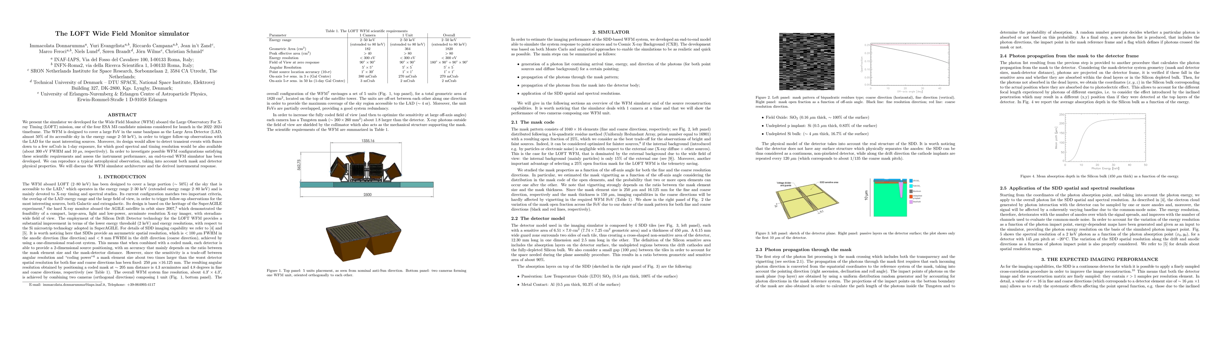A simulator was developed for the Large Observatory For X-ray Timing (LOFT) mission's Wide Field Monitor to test its performance and scientific capabilities.