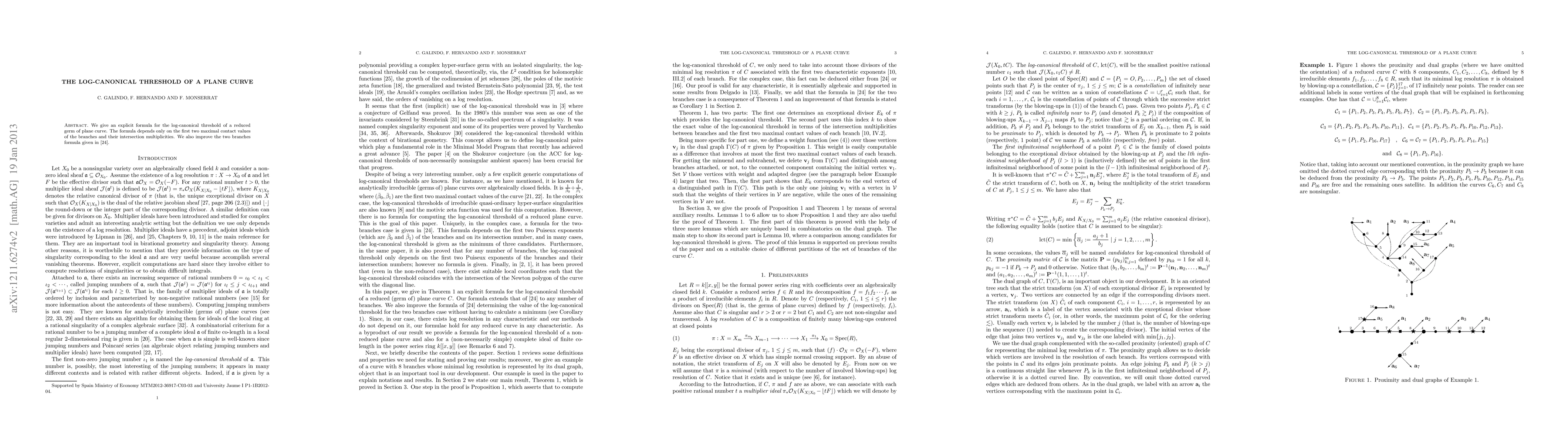 Summary: This paper provides an explicit formula for the log-canonical threshold of a reduced plane curve, based on the first two maximal contact values and intersection multiplicities of its branches, and enhances the existing two-branches formula from Kuwata's prior work.