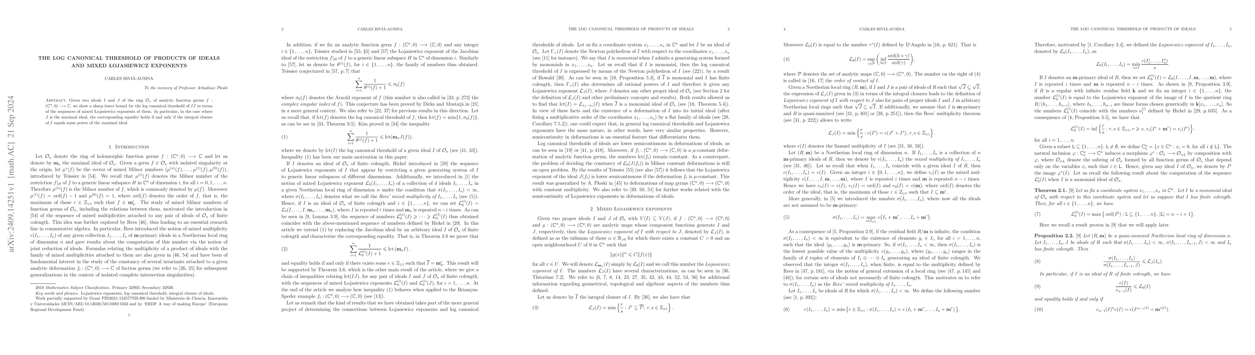 Given two ideals $I$ and $J$ of the ring $\mathcal O_n$ of analytic function germs $f:(\mathbb C^n,0)\to \mathbb C$, we show a sharp lower bound for the log canonical threshold of $IJ$ in terms of the sequences of mixed {\L}ojasiewicz exponents of them. In particular, in the case where $J$ is the maximal ideal, the corresponding equality holds if and only if the integral closure of $I$ equals some power of the maximal ideal.