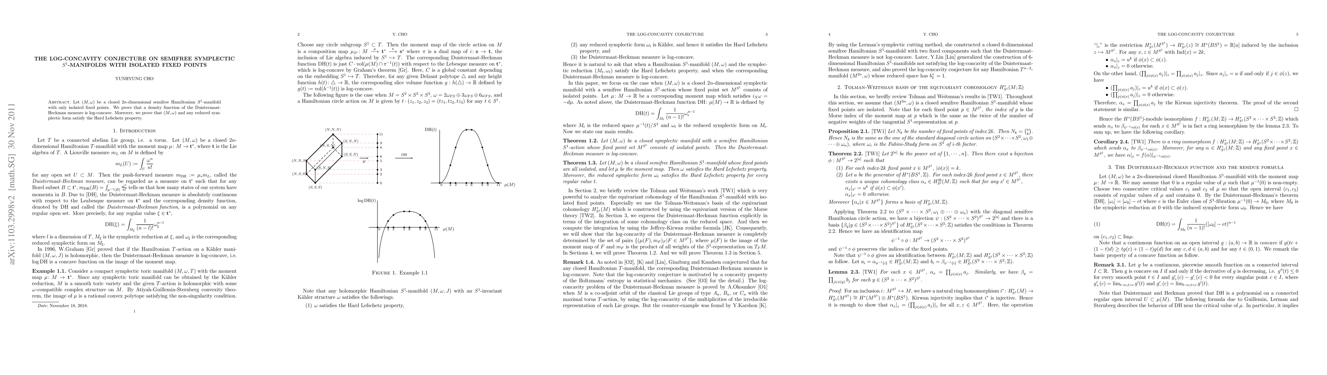 Summary: The paper proves that the density function of the Duistermaat-Heckman measure for semifree symplectic $S^1$-manifolds with isolated fixed points is log-concave, and these manifolds satisfy the Hard Lefschetz property.