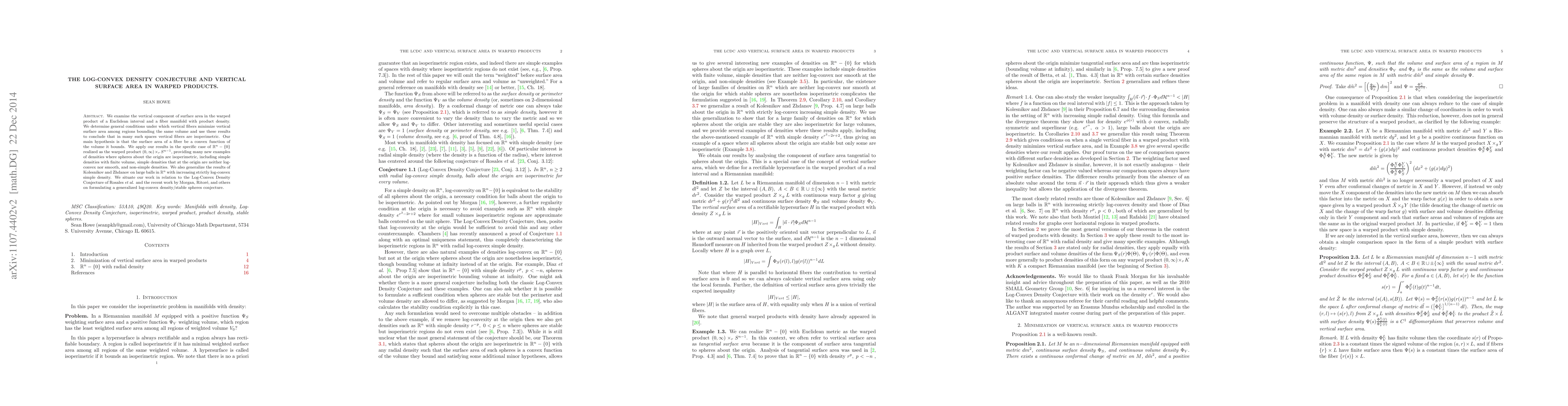 We examine the vertical component of surface area in the warped product of a Euclidean interval and a fiber manifold with product density. We determine general conditions under which vertical fibers minimize vertical surface area among regions bounding the same volume and use these results to conclude that in many such spaces vertical fibers are isoperimetric. Our main hypothesis is that the surface area of a fiber be a convex function of the volume it bounds. We apply our results in the specific case of $\mathbb{R}^{n}-\{0\}$ realized as the warped product $(0,\infty)\times_{r}S^{n-1}$, providing many new examples of densities where spheres about the origin are isoperimetric, including simple densities with finite volume, simple densities that at the origin are neither log-convex nor smooth, and non-simple densities. We also generalize the results of Kolesnikov and Zhdanov on large balls in $\mathbb{R}^{n}$ with increasing strictly log-convex simple density. We situate our work in relation to the Log-Convex Density Conjecture of Rosales et al. and the recent work by Morgan, Ritor\'e, and others on formulating a generalized log-convex density/stable spheres conjecture.