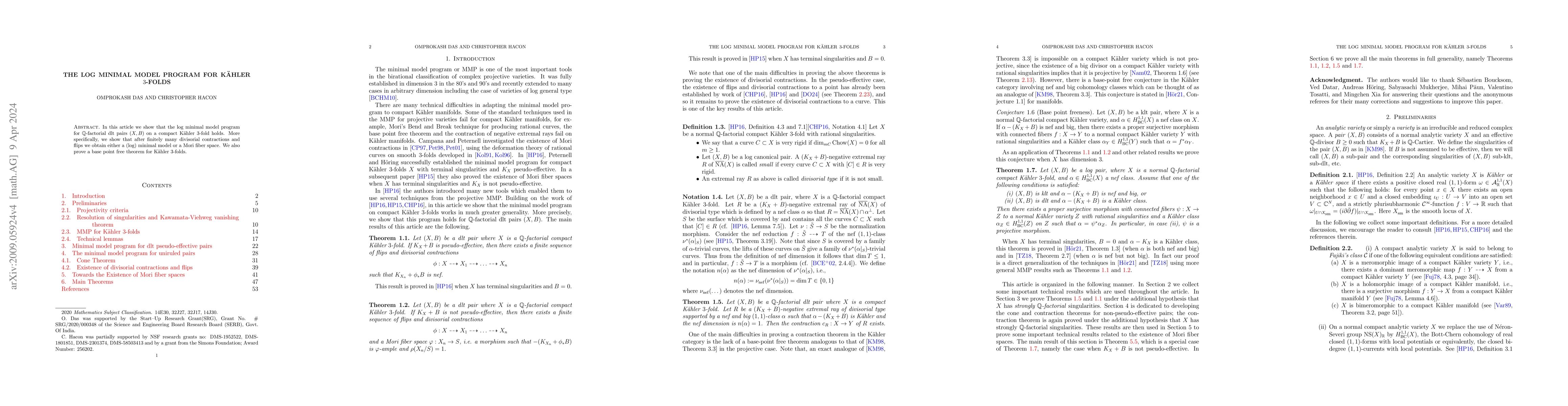 Summary: This paper proves the Log Minimal Model Program for $\mathbb{Q}$-factorial dlt pairs on compact Kähler 3-folds, demonstrating that after a finite sequence of divisorial contractions and flips, the outcome is either a minimal model or a Mori fiber space. Additionally, a base point free theorem is established for Kähler 3-folds.