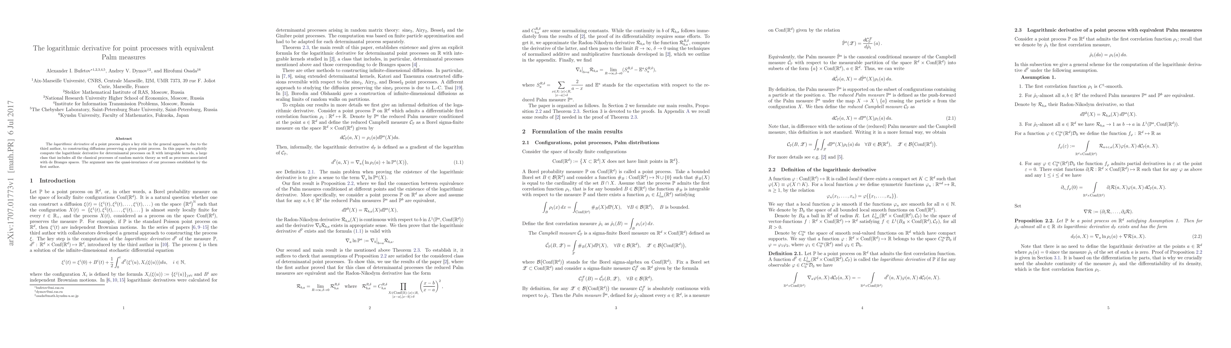 This paper computes the logarithmic derivative for determinantal point processes on $\mathbb{R}$ with integrable kernels, crucial for constructing diffusions preserving these processes, leveraging the quasi-invariance established by the first author.