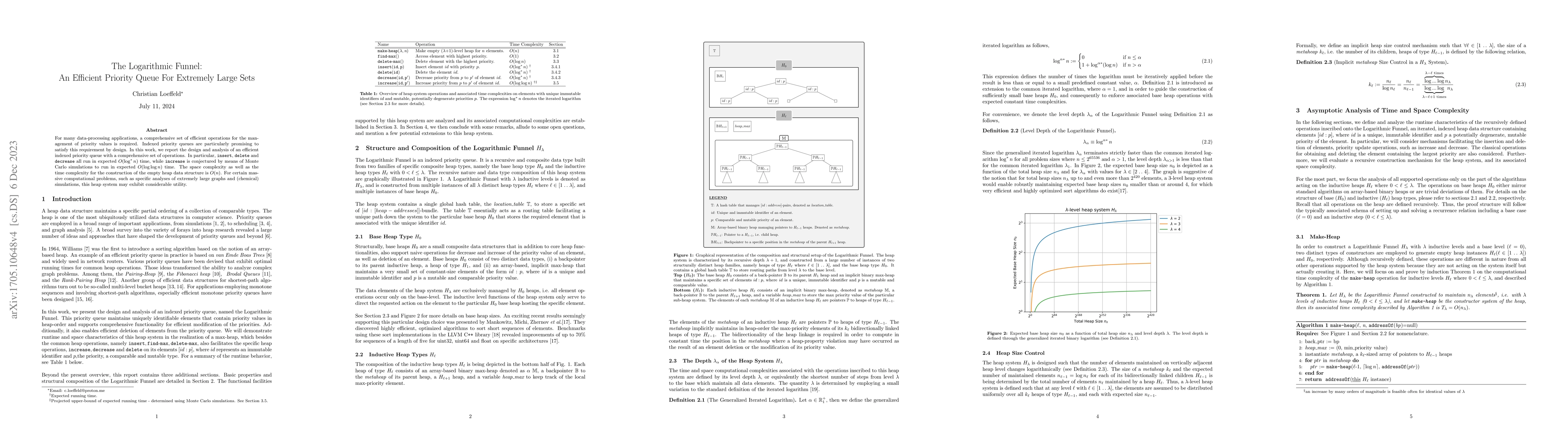 This paper introduces the Logarithmic Funnel Heap, an efficient indexed priority queue designed for managing extremely large sets. It achieves $O(\log^{*}{n})$ time complexity for $\mathtt{insert}$, $\mathtt{delete}$, and $\mathtt{decrease}$ operations, and conjectures $O(\log\log{n})$ for $\mathtt{increase}$; it is particularly useful for massive computational problems like large graph analyses and simulations.