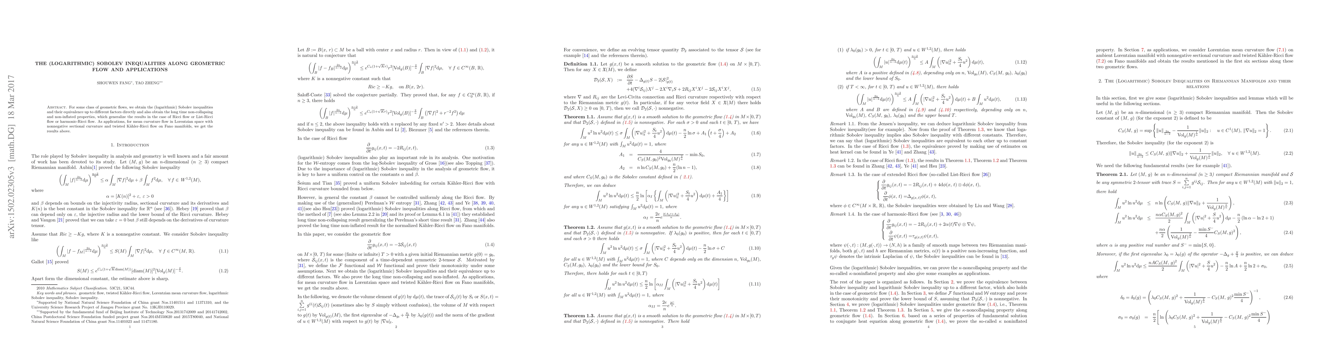This paper establishes logarithmic Sobolev inequalities for various geometric flows, proving their equivalence and long-time non-collapsing properties. Applications include mean curvature flow in Lorentzian space and twisted Kähler-Ricci flow on Fano manifolds.