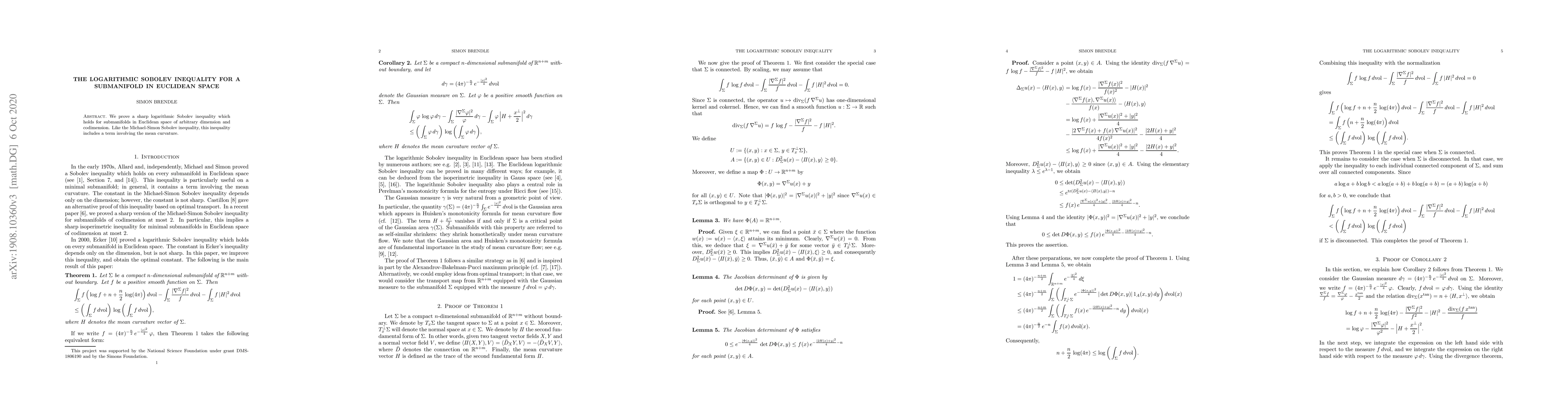 Summary: This paper establishes a sharp logarithmic Sobolev inequality for submanifolds in Euclidean space, incorporating a mean curvature term akin to the Michael-Simon inequality, applicable to any dimension and codimension.
