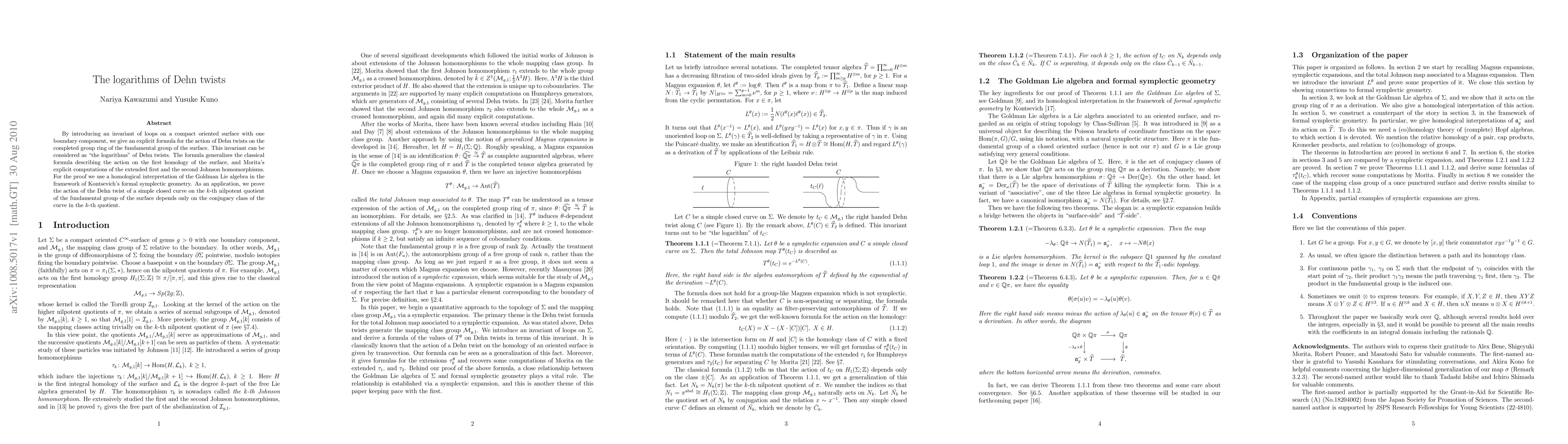 This paper introduces an invariant for loops on a surface to provide an explicit formula for Dehn twists' action on the completed group ring of the surface's fundamental group, generalizing classical results. The proof leverages a homological interpretation of the Goldman Lie algebra within Kontsevich's formal symplectic geometry.