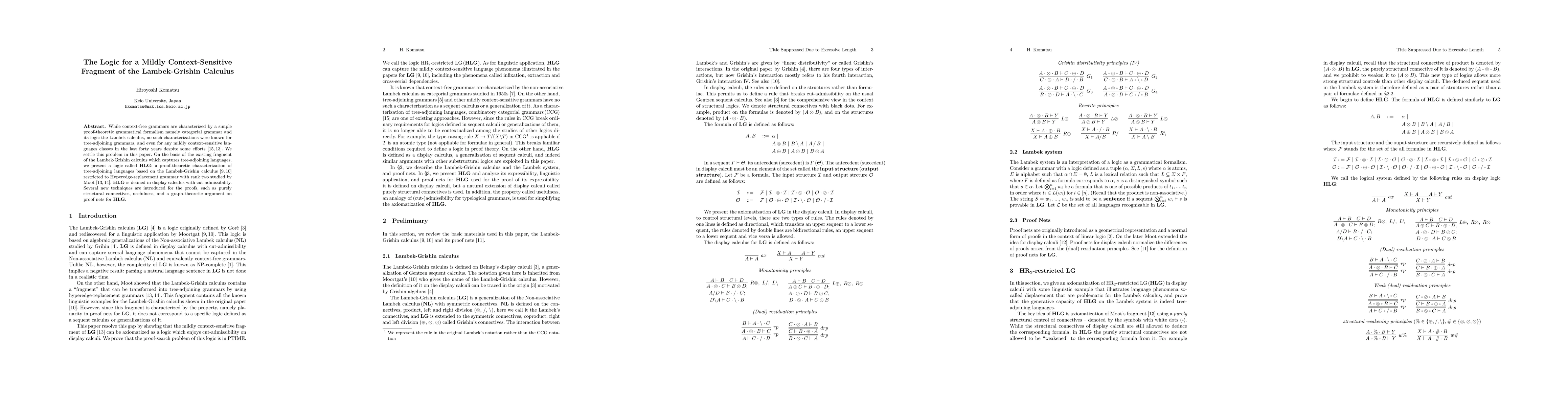This paper presents HLG, a logic that provides a proof-theoretic characterization for tree-adjoining languages based on a restricted fragment of the Lambek-Grishin calculus. The authors introduce new techniques including structural connectives and graph-theoretic arguments to define HLG in display calculus.