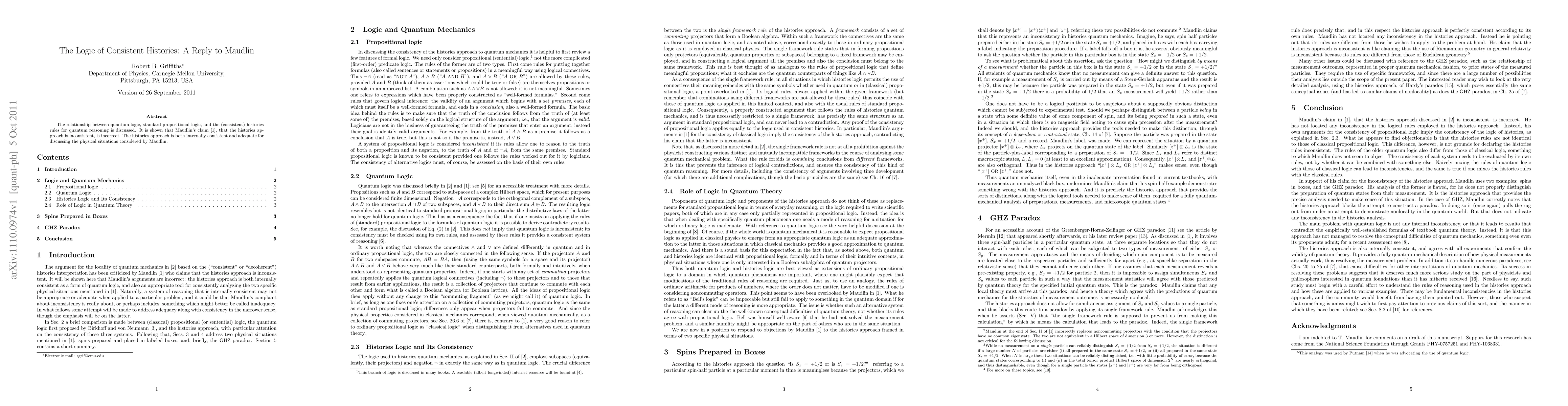 The relationship between quantum logic, standard propositional logic, and the (consistent) histories rules for quantum reasoning is discussed. It is shown that Maudlin's claim [Am. J. Phys. 79 (2011) 954] that the histories approach is inconsistent, is incorrect. The histories approach is both internally consistent and adequate for discussing the physical situations considered by Maudlin.