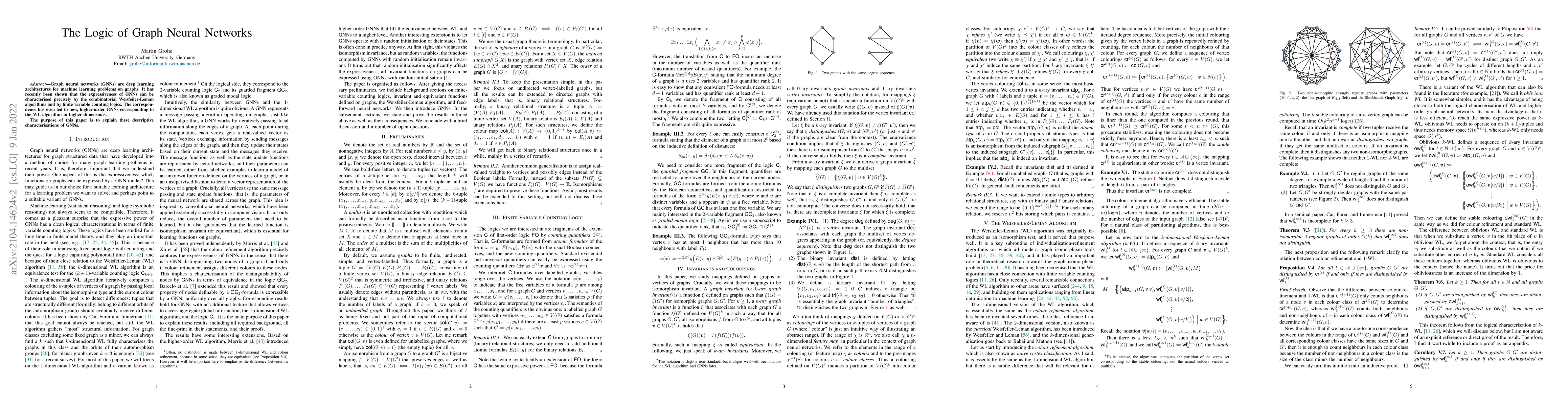 Graph neural networks (GNNs) are deep learning architectures for machine learning problems on graphs. It has recently been shown that the expressiveness of GNNs can be characterised precisely by the combinatorial Weisfeiler-Leman algorithms and by finite variable counting logics. The correspondence has even led to new, higher-order GNNs corresponding to the WL algorithm in higher dimensions. The purpose of this paper is to explain these descriptive characterisations of GNNs.