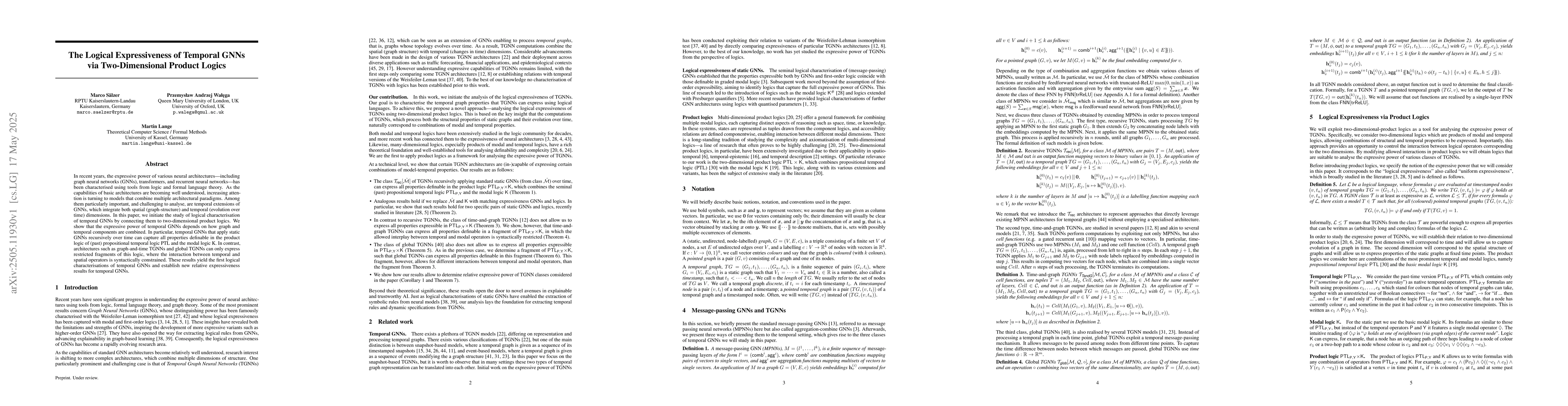 The paper connects temporal GNNs to two-dimensional product logics to characterize their expressive power, analyzing how spatial and temporal components are combined.