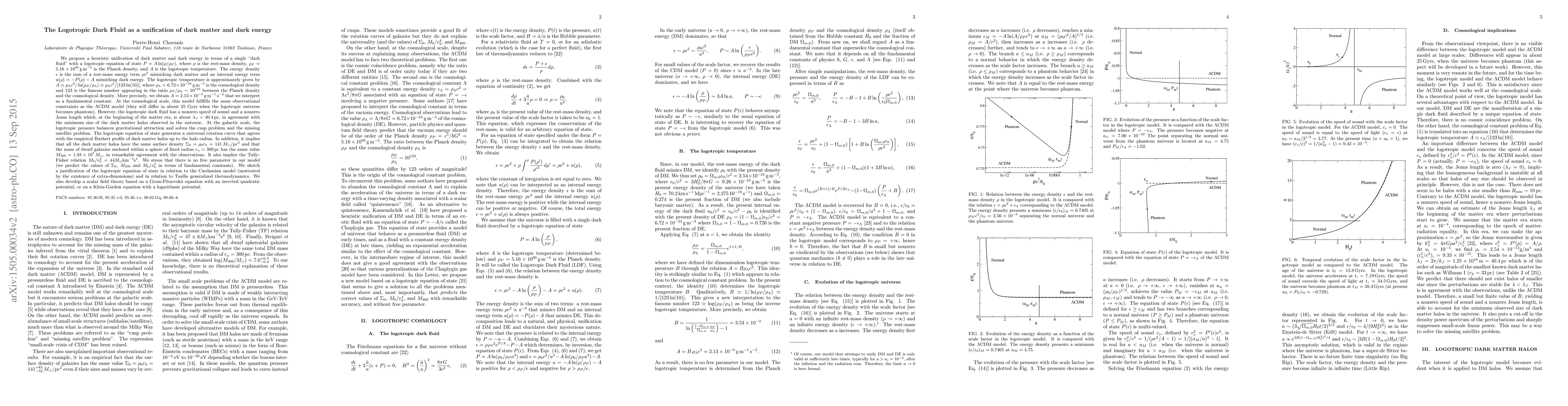 We propose a heuristic unification of dark matter and dark energy in terms of a single dark fluid with a logotropic equation of state $P=A\ln(\rho/\rho_P)$, where $\rho$ is the rest-mass density, $\rho_P$ is the Planck density, and $A$ is the logotropic temperature. The energy density $\epsilon$ is the sum of a rest-mass energy term $\rho c^2$ mimicking dark matter and an internal energy term $u(\rho)=-P(\rho)-A$ mimicking dark energy. The logotropic temperature is approximately given by $A \simeq \rho_{\Lambda}c^2/\ln(\rho_P/\rho_{\Lambda})\simeq\rho_{\Lambda}c^2/[123 \ln(10)]$, where $\rho_{\Lambda}$ is the cosmological density. More precisely, we obtain $A=2.13\times 10^{-9} \, {\rm g}\, {\rm m}^{-1}\, {\rm s}^{-2}$ that we interpret as a fundamental constant. At the cosmological scale, this model fullfills the same observational constraints as the $\Lambda$CDM model. However, it has a nonzero velocity of sound and a nonzero Jeans length which, at the beginning of the matter era, is about $\lambda_J=40.4\, {\rm pc}$, in agreement with the minimum size of the dark matter halos observed in the universe. At the galactic scale, the logotropic pressure balances gravitational attraction and solves the cusp problem and the missing satellite problem. The logotropic equation of state generates a universal rotation curve that agrees with the empirical Burkert profile of dark matter halos up to the halo radius. In addition, it implies that all the dark matter halos have the same surface density $\Sigma_0=\rho_0 r_h=141\, M_{\odot}/{\rm pc}^2$ and that the mass of dwarf galaxies enclosed within a sphere of fixed radius $r_{u}=300\, {\rm pc}$ has the same value $M_{300}=1.93\times 10^{7}\, M_{\odot}$, in remarkable agreement with the observations.