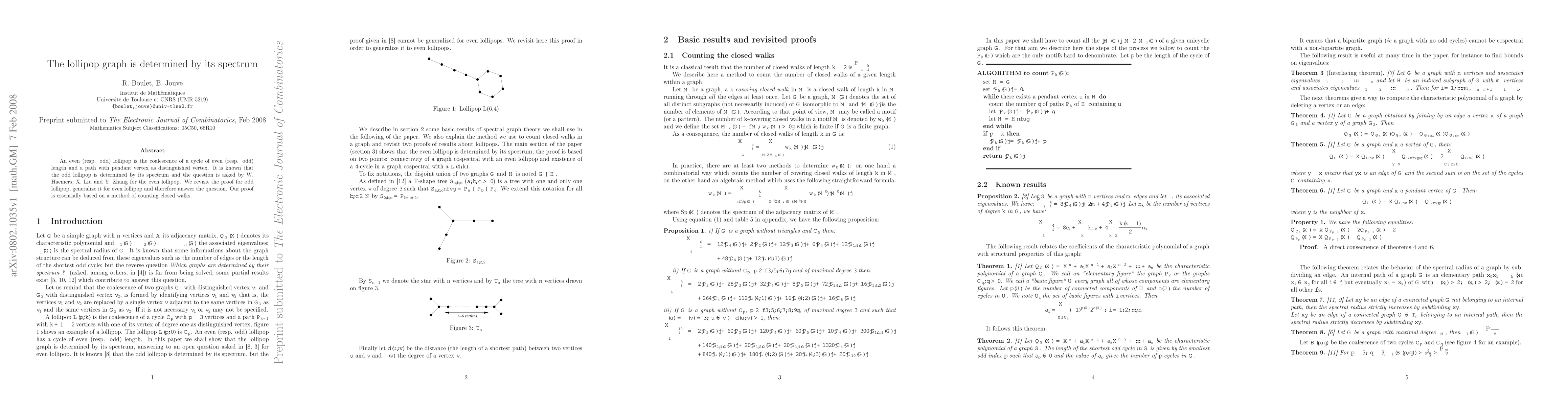 Summary: This paper proves that both even and odd lollipop graphs are determined by their spectra, generalizing the known result for odd lollipops. The proof leverages a method of counting closed walks to establish the spectral determination.