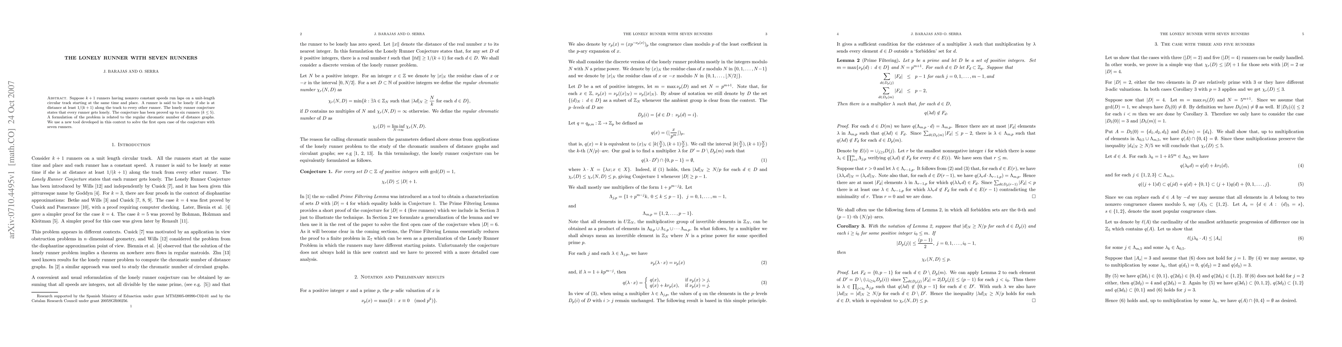 The lonely runner conjecture posits that any runner on a circular track will eventually be at least $1/(k+1)$ distance away from every other runner. This conjecture has been proven for $k \leq 5$ runners, and a new tool has now been used to confirm it for the first time for seven runners.
