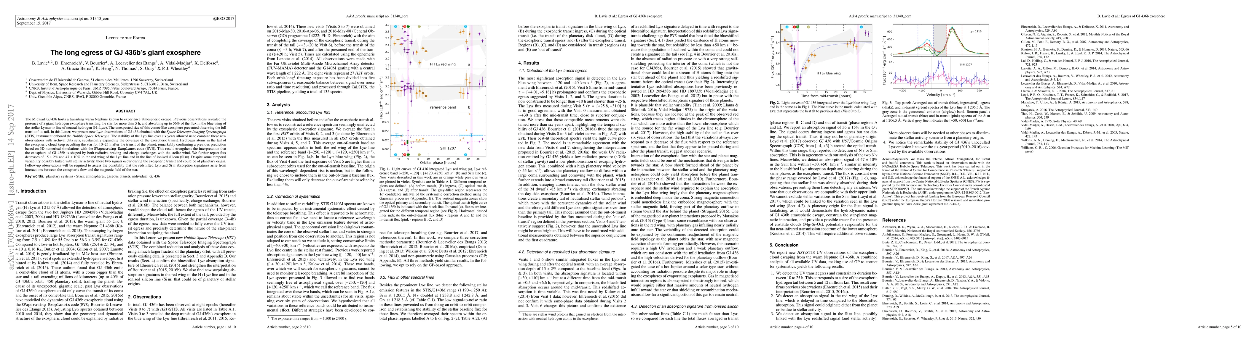 This paper reports on the extended egress of the giant hydrogen exosphere around GJ 436b, revealing that the tail of the exosphere continues to occult the star for 10-25 hours post-transit. The findings support the hypothesis that the exosphere's shape is influenced by radiative braking and stellar wind interactions, and suggest potential planetary-origin signals in the red wing of the Ly{\alpha} line and ionised silicon line.