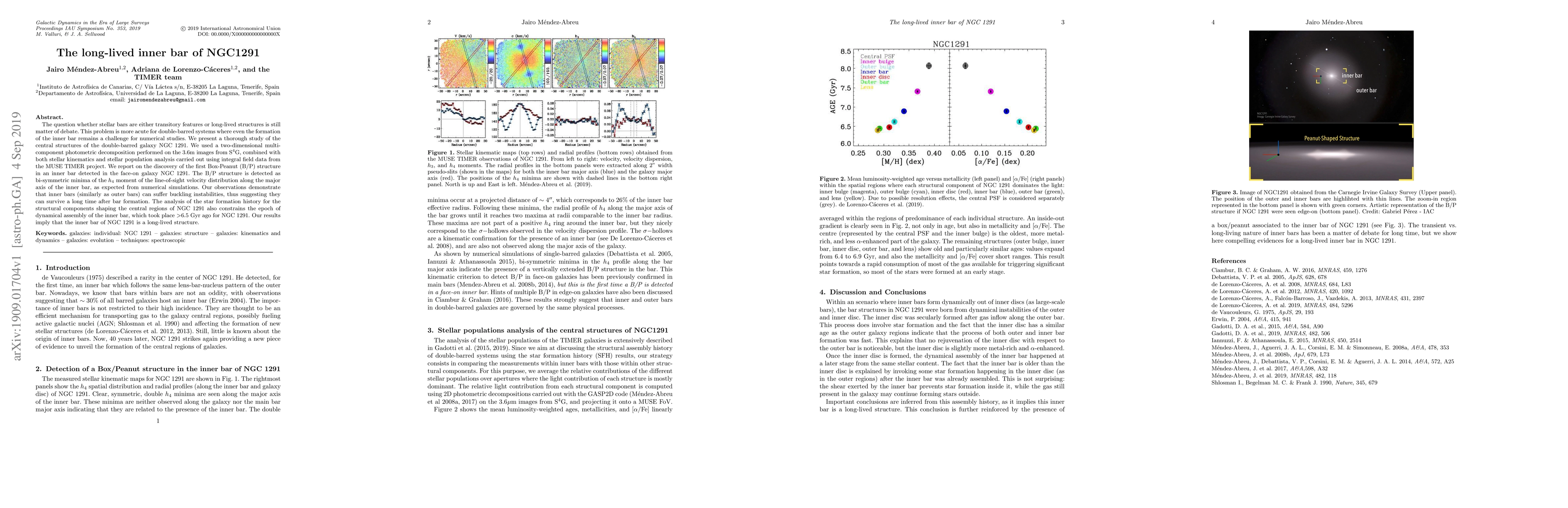 The question whether stellar bars are either transitory features or long-lived structures is still matter of debate. This problem is more acute for double-barred systems where even the formation of the inner bar remains a challenge for numerical studies. We present a thorough study of the central structures of the double-barred galaxy NGC1291. We used a two-dimensional multi-component photometric decomposition performed on the 3.6$\mu$m images from S$^4$G, combined with both stellar kinematics and stellar population analysis carried out using integral field data from the MUSE TIMER project. We report on the discovery of the first Box-Peanut (B/P) structure in an inner bar detected in the face-on galaxy NGC1291. The B/P structure is detected as bi-symmetric minima of the $h_4$ moment of the line-of-sight velocity distribution along the major axis of the inner bar, as expected from numerical simulations. Our observations demonstrate that inner bars (similarly as outer bars) can suffer buckling instabilities, thus suggesting they can survive a long time after bar formation. The analysis of the star formation history for the structural components shaping the central regions of NGC 1291 also constrains the epoch of dynamical assembly of the inner bar, which took place $>$6.5 Gyr ago for NGC1291. Our results imply that the inner bar of NGC1291 is a long-lived structure.