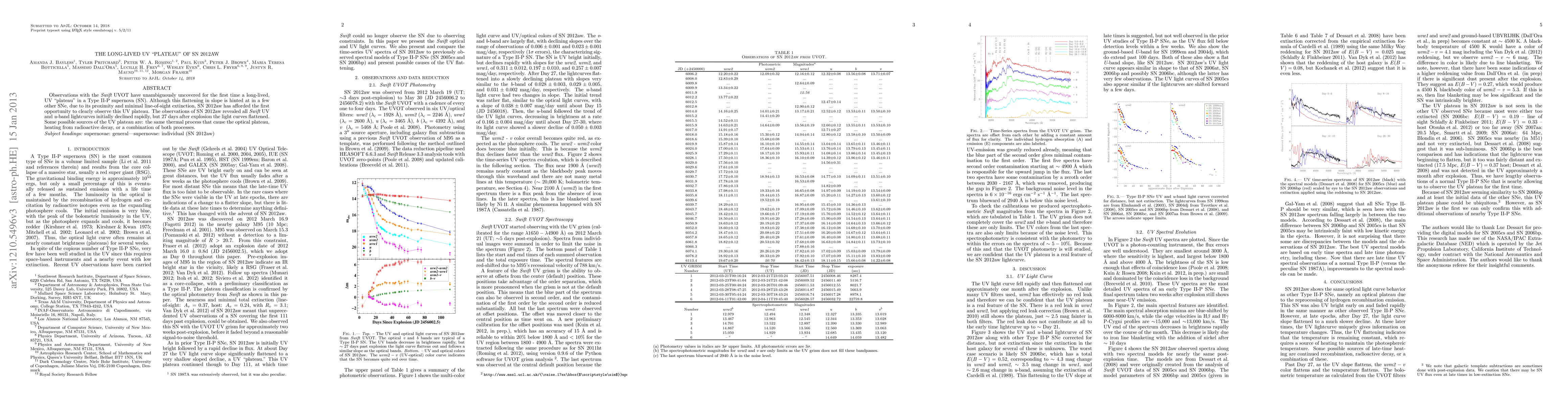 Observations with the Swift UVOT have unambiguously uncovered for the first time a long-lived, UV "plateau" in a Type II-P supernova (SN). Although this flattening in slope is hinted at in a few other SNe, due to its proximity and minimal line-of-sight extinction, SN 2012aw has afforded the first opportunity to clearly observe this UV plateau. The observations of SN 2012aw revealed all Swift UV and u-band lightcurves initially declined rapidly, but 27 days after explosion the light curves flattened. Some possible sources of the UV plateau are: the same thermal process that cause the optical plateau, heating from radioactive decay, or a combination of both processes.