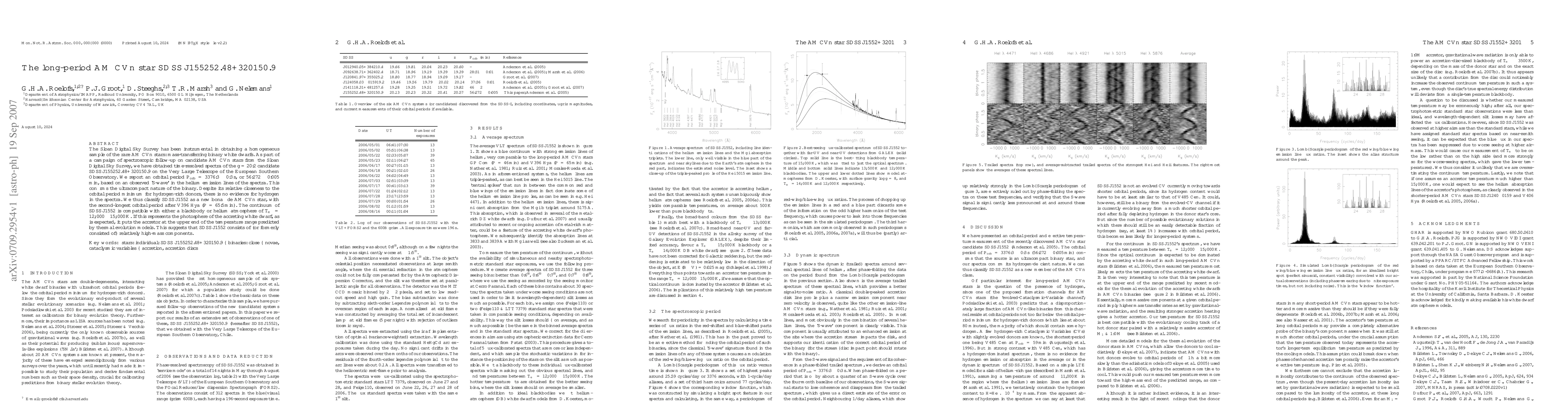 The Sloan Digital Sky Survey identified SDSS J155252.48+320150.9 as a new AM CVn star with an orbital period of 56.272±0.005 min, the second longest among known AM CVn stars. The absence of hydrogen in its spectra suggests it lacks a hydrogen-rich donor, indicating high-mass components.