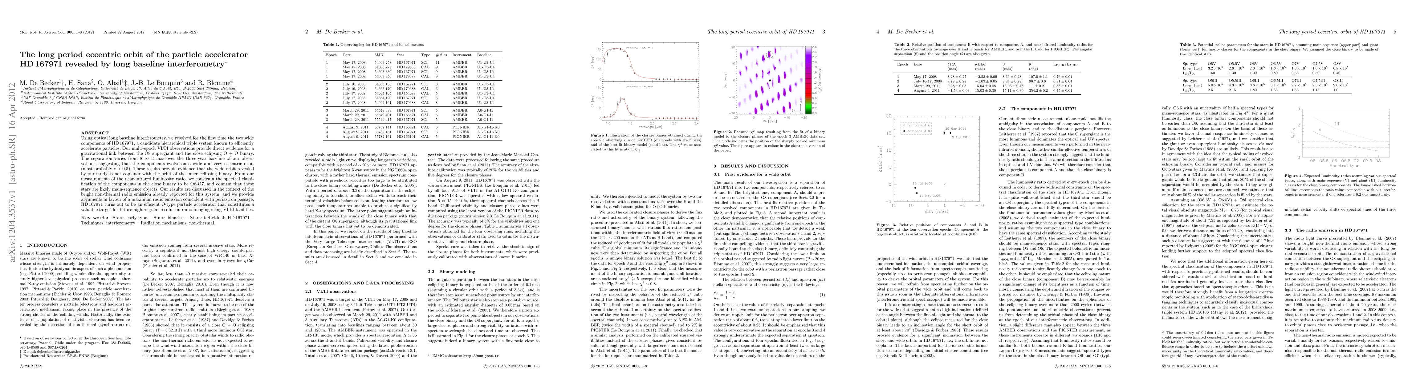 This study reveals the eccentric orbit of HD167971, a hierarchical triple system, using optical interferometry, showing a separation varying from 8 to 15 mas over three years, indicating a non-coplanar, wide orbit likely with eccentricity greater than 0.5. The findings suggest the system's potential as a particle accelerator, with maximum radio emission coinciding with periastron passage.