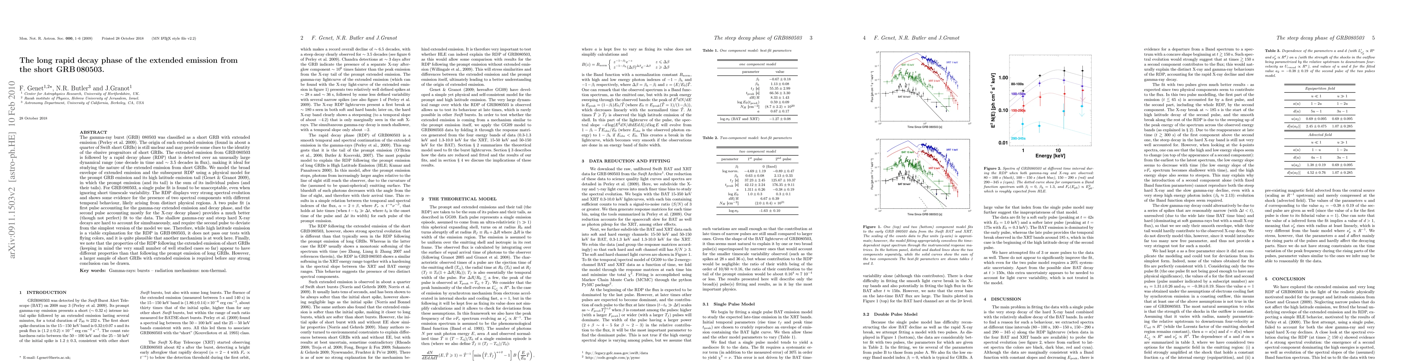 GRB080503 was classified as a short GRB with extended emission (Perley et al. 2009). The origin of such extended emission (found in about a quarter of Swift short GRBs) is still unclear and may provide some clues to the identity of the elusive progenitors of short GRBs. The extended emission from GRB 080503 is followed by a rapid decay phase (RDP) that is detected over an unusually large dynamical range (one decade in time and ~3.5 decades in flux). We model the broad envelope of extended emission and the subsequent RDP using a physical model (Genet & Granot 2009), in which the prompt emission (and its tail) is the sum of its individual pulses (and their tails). For GRB 080503, a single pulse fit is found to be unacceptable. The RDP displays very strong spectral evolution and shows some evidence for the presence of two spectral components with different temporal behaviour, likely arising from distinct physical regions. A two pulse fit provides a much better fit to the data. The shallow gamma-ray and steep hard X-ray decays are hard to account for simultaneously, and require the second pulse to deviate from the simplest version of the model we use. Therefore, while high latitude emission is a viable explanation for the RDP in GRB080503, it is quite plausible that another mechanism is at work here. Finally, we note that the properties of the RDP following the extended emission of short GRBs appear to have different properties than that following the prompt emission of long GRBs. However, a larger sample of short GRBs with extended emission is required before any strong conclusion can be drawn.