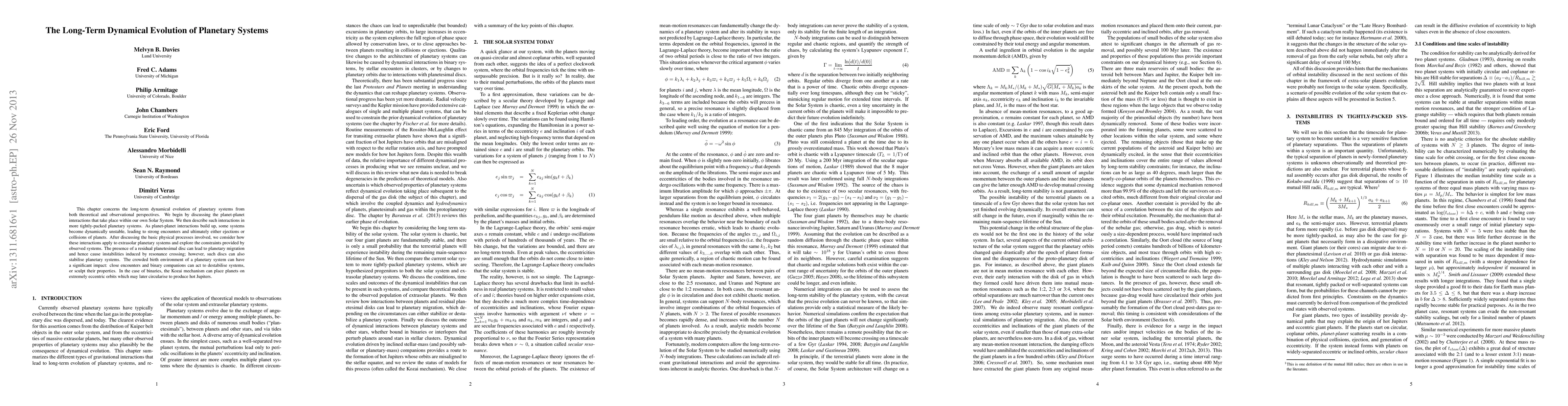 This paper explores the long-term dynamical evolution of planetary systems through theoretical and observational lenses, examining planet-planet interactions, instabilities, and the effects of residual planetesimal discs and binary companions on system stability and evolution. It also discusses the Kozai mechanism's role in shaping planetary orbits.