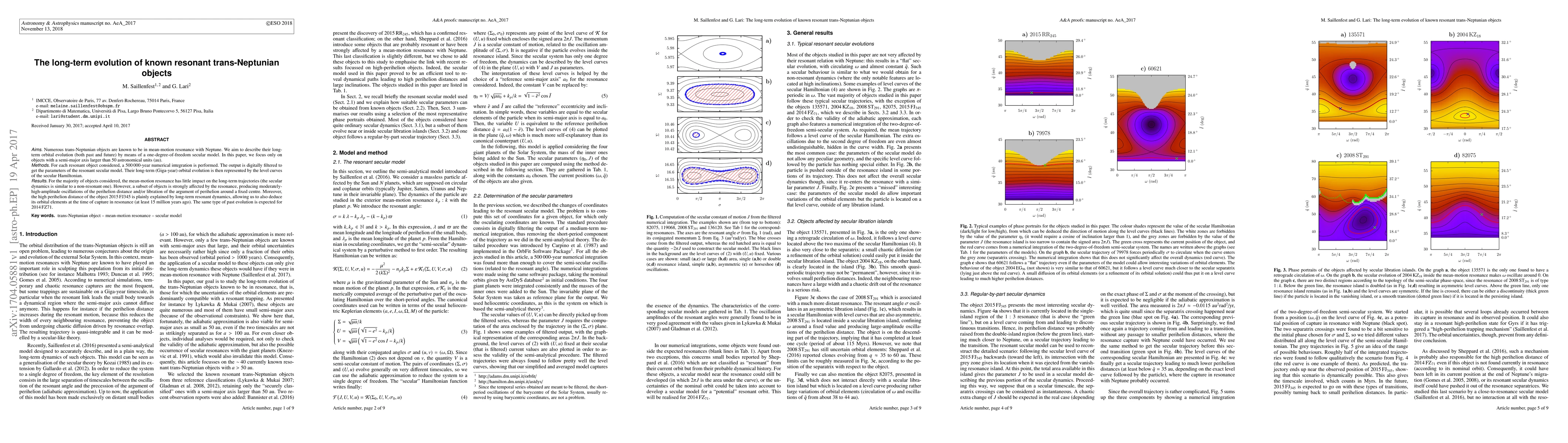 Aims. Numerous trans-Neptunian objects are known to be in mean-motion resonance with Neptune. We aim to describe their long-term orbital evolution (both past and future) by means of a one-degree-of-freedom secular model. In this paper, we focus only on objects with a semi-major axis larger than 50 astronomical units (au). Methods. For each resonant object considered, a 500 000-year numerical integration is performed. The output is digitally filtered to get the parameters of the resonant secular model. Their long-term (Giga-year) orbital evolution is then represented by the level curves of the secular Hamiltonian. Results. For the majority of objects considered, the mean-motion resonance has little impact on the long-term trajectories (the secular dynamics is similar to a non-resonant one). However, a subset of objects is strongly affected by the resonance, producing moderately-high-amplitude oscillations of the perihelion distance and/or libration of the argument of perihelion around a fixed centre. Moreover, the high perihelion distance of the object 2015 FJ345 is plainly explained by long-term resonant dynamics, allowing us to also deduce its orbital elements at the time of capture in resonance (at least 15 million years ago). The same type of past evolution is expected for 2014 FZ71.