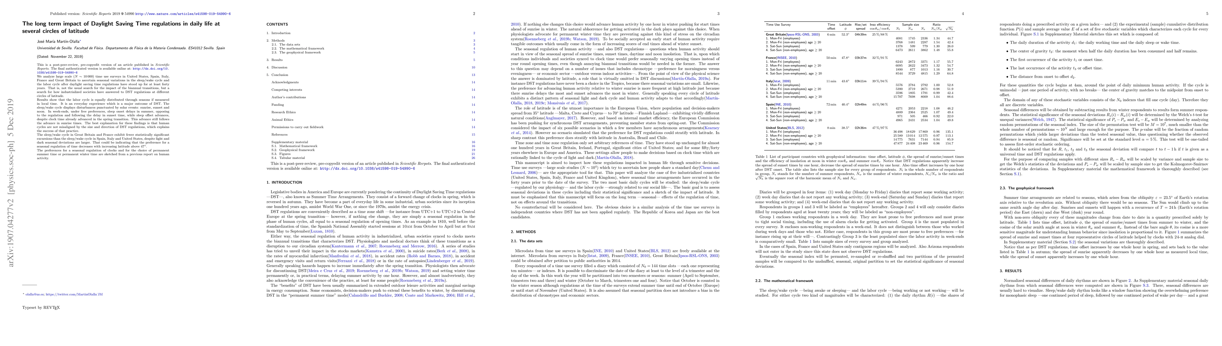 We analyze large scale (N~10000) time use surveys in United States, Spain, Italy, France and Great Britain to ascertain seasonal variations in the sleep/wake cycle and the labor cycle after daylight saving time -- summer time arrangements -- regulations have stood up for at least forty years. That is, not the usual search for short-term effects of the biannual transitions of DST but a search for how industrialized societies have responded to DST regulations. Results show that the labor cycle is equally distributed through seasons, an everyday experience which is a major outcome of DST. The sleep/wake cycle displays disturbance punctuated by solar events: sunrise, sunset and noon. Sleep onset in non-employees in a week-end -- the group more prone to free choices -- delays in summer opposing to the regulation. Yet, sleep offset in this group advances in summer, despite clock time already advanced in the spring transition. The best explanation for these findings is that size and directionality of DST regulations are close to an optimum. The role of latitude is discussed after sleep/wake cycle in Spain, Italy and United States exhibit fewer statistically significant excursions that the sleep/wake cycle in Great Britain and France, which could be indicating preference for time synchronization as latitude increases. The consequences of a seasonal regulation of clocks vs the choice of permanent summer time or permanent winter time is sketched from a previous report on human activity.