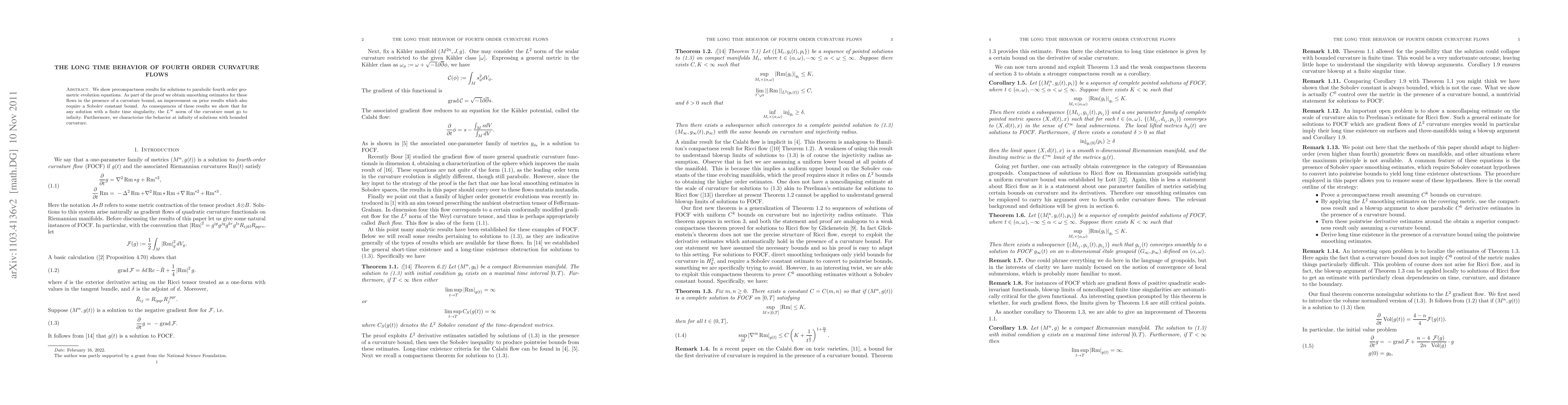 This paper demonstrates precompactness and smoothing estimates for solutions to fourth-order geometric evolution equations under curvature bounds, improving upon previous results. It concludes that solutions with finite time singularities exhibit infinite $L^{\infty}$ curvature norms and characterizes the behavior of solutions with bounded curvature at infinity.