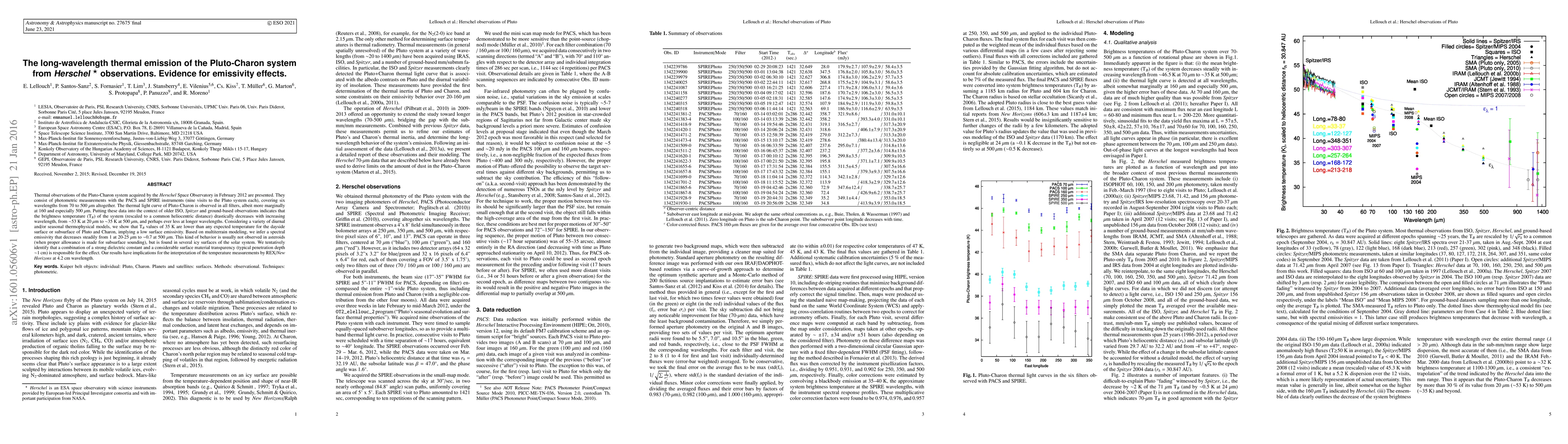 This paper reports on Herschel observations of the Pluto-Charon system, revealing a significant decrease in brightness temperature from 53 K at 20 µm to 35 K at 500 µm, indicating low surface emissivity. The observed spectral emissivity suggests a combination of strong dielectric constant and surface material transparency, which has implications for interpreting New Horizons data.