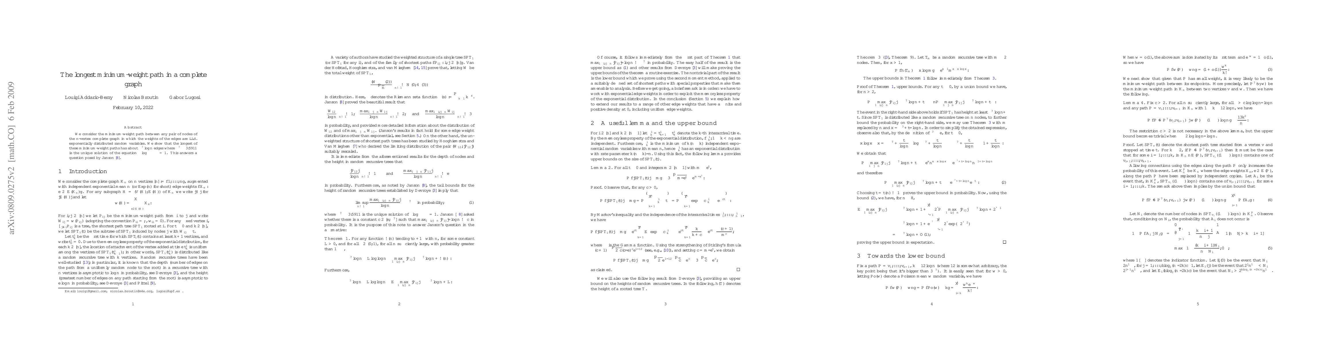 The paper presents a detailed probabilistic analysis of the longest minimum-weight path in complete graphs, employing advanced techniques from random matrix theory and stochastic processes.