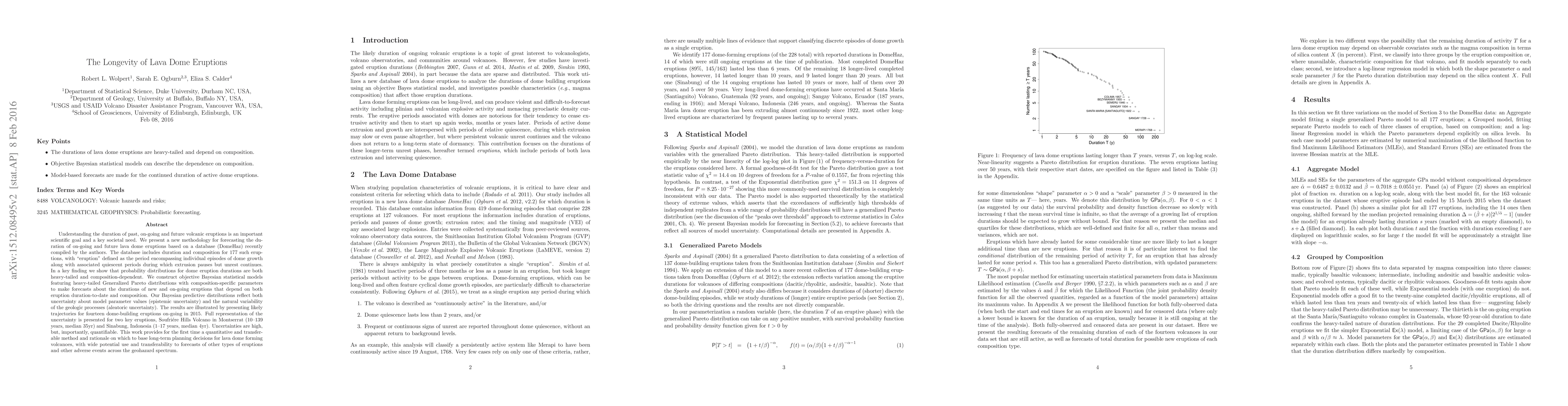 Understanding the duration of past, on-going and future volcanic eruptions is an important scientific goal and a key societal need. We present a new methodology for forecasting the duration of on-going and future lava dome eruptions based on a database (DomeHaz) recently compiled by the authors. The database includes duration and composition for 177 such eruptions, with "eruption" defined as the period encompassing individual episodes of dome growth along with associated quiescent periods during which extrusion pauses but unrest continues. In a key finding we show that probability distributions for dome eruption durations are both heavy-tailed and composition-dependent. We construct Objective Bayes statistical models featuring heavy-tailed Generalized Pareto distributions with composition-specific parameters to make forecasts about the durations of new and on-going eruptions that depend on both eruption duration-to-date and composition. Our Bayesian predictive distributions reflect both uncertainty about model parameter values (epistemic uncertainty) and the natural variability of the geologic processes (aleatoric uncertainty). The results are illustrated by presenting likely trajectories for fourteen dome-building eruptions on-going in 2015. Full representation of the uncertainty is presented for two key eruptions, Soufri{\'{e}}re Hills Volcano in Montserrat (10--139 years, median 35yr) and Sinabung, Indonesia (1--17 years, median 4yr). Uncertainties are high, but, importantly, quantifiable. This work provides for the first time a quantitative and transferable method and rationale on which to base long-term planning decisions for lava dome forming volcanoes, with wide potential use and transferability to forecasts of other types of eruptions and other adverse events across the geohazard spectrum.