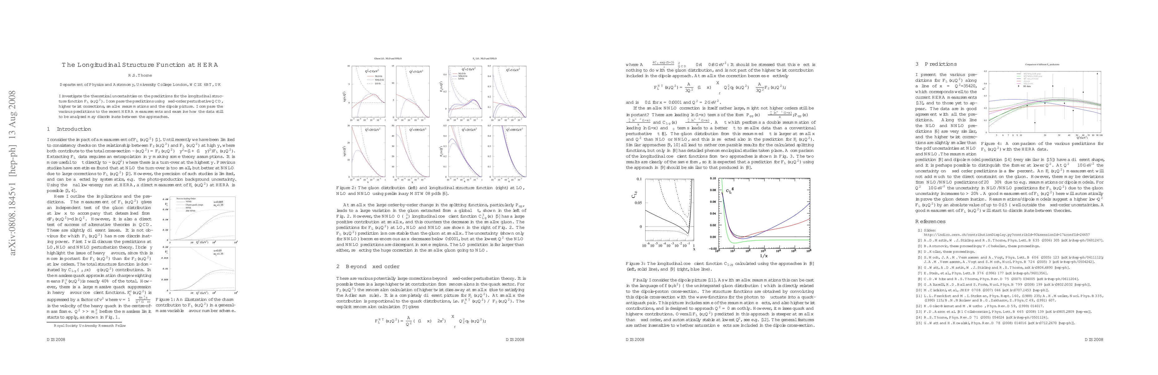 The research presents a direct measurement of the longitudinal structure function at HERA using fixed-order perturbative QCD, higher twist corrections, small-x resummations, and the dipole picture.