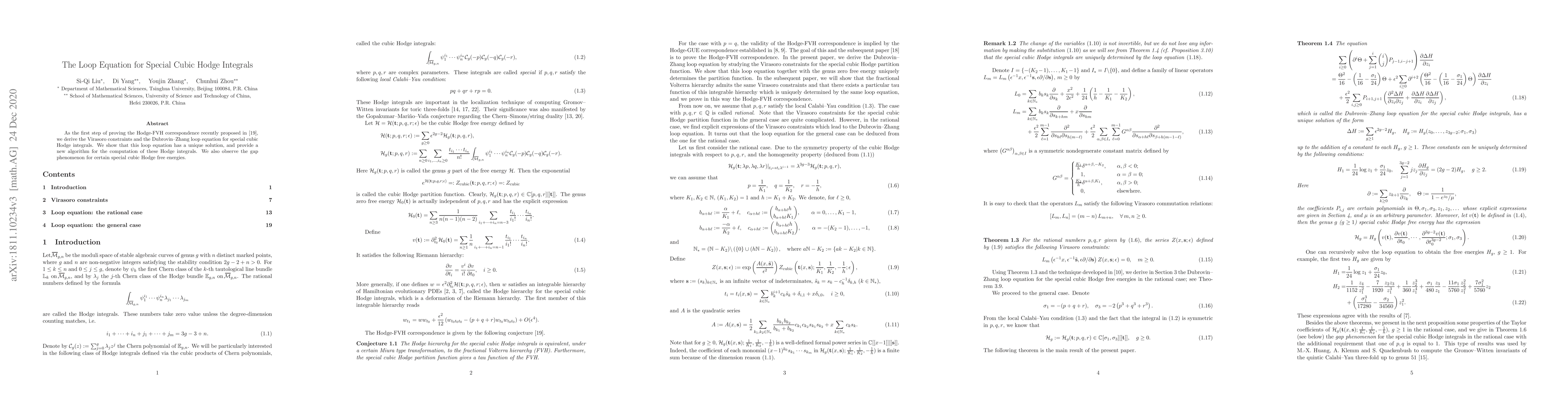 This paper derives the Virasoro constraints and the loop equation for special cubic Hodge integrals as a foundational step towards proving the Hodge-FVH correspondence. It demonstrates the unique solvability of the loop equation and introduces a new algorithm for computing these integrals, while noting a gap phenomenon in certain related free energies.