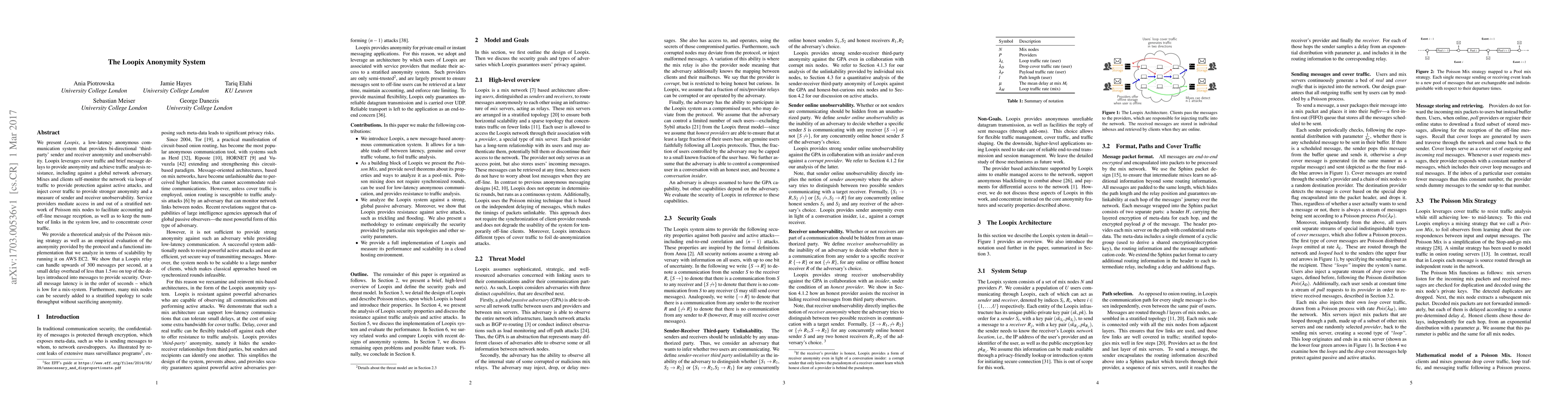 We present Loopix, a low-latency anonymous communication system that provides bi-directional 'third-party' sender and receiver anonymity and unobservability. Loopix leverages cover traffic and brief message delays to provide anonymity and achieve traffic analysis resistance, including against a global network adversary. Mixes and clients self-monitor the network via loops of traffic to provide protection against active attacks, and inject cover traffic to provide stronger anonymity and a measure of sender and receiver unobservability. Service providers mediate access in and out of a stratified network of Poisson mix nodes to facilitate accounting and off-line message reception, as well as to keep the number of links in the system low, and to concentrate cover traffic. We provide a theoretical analysis of the Poisson mixing strategy as well as an empirical evaluation of the anonymity provided by the protocol and a functional implementation that we analyze in terms of scalability by running it on AWS EC2. We show that a Loopix relay can handle upwards of 300 messages per second, at a small delay overhead of less than 1.5 ms on top of the delays introduced into messages to provide security. Overall message latency is in the order of seconds - which is low for a mix-system. Furthermore, many mix nodes can be securely added to a stratified topology to scale throughput without sacrificing anonymity.