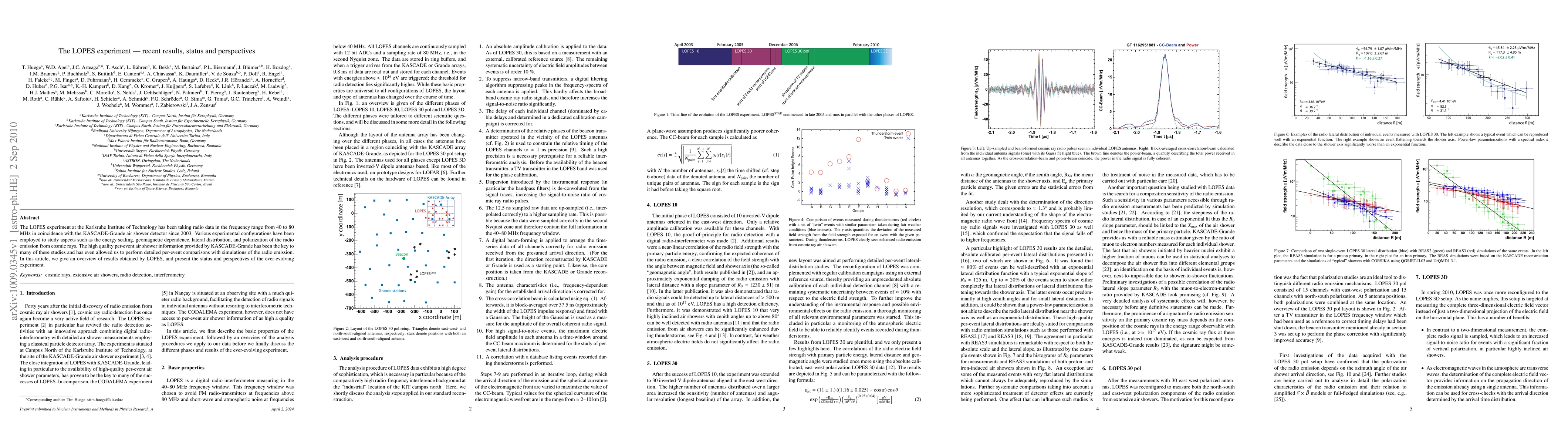 The LOPES experiment at Karlsruhe Institute of Technology collects radio data from cosmic rays in the 40-80 MHz range, correlating it with KASCADE-Grande air shower data since 2003. This collaboration has enabled studies on energy scaling, geomagnetic effects, and radio emission characteristics, with promising future directions.