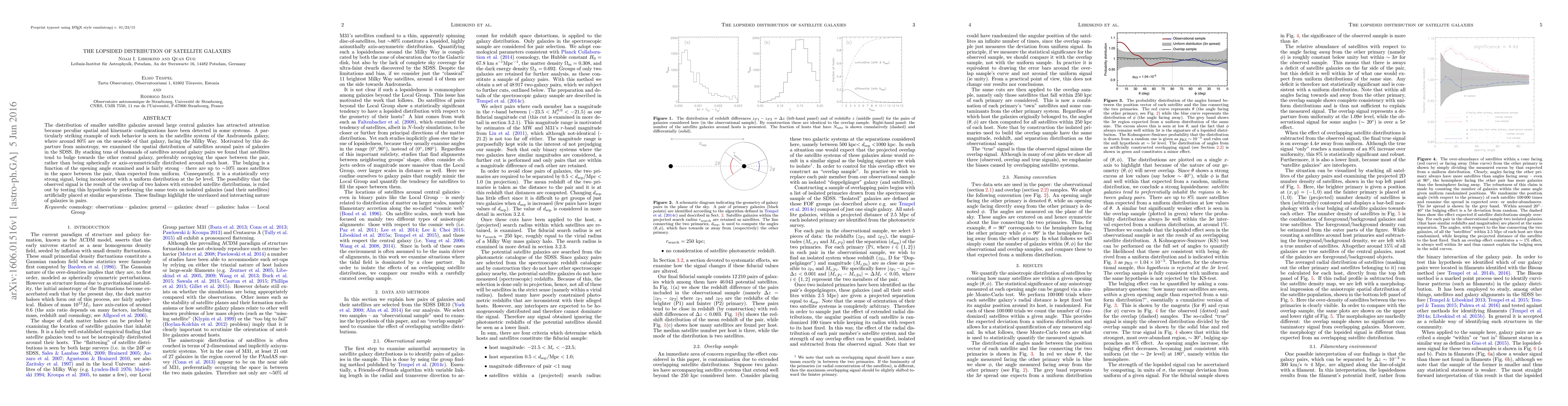 The study reveals that satellite galaxies around large central galaxies tend to cluster between the pair, rather than being uniformly distributed, indicating an interacting and unrelaxed nature of galaxies in pairs. This bulging distribution is statistically significant, inconsistent with a uniform distribution at the 5σ level.