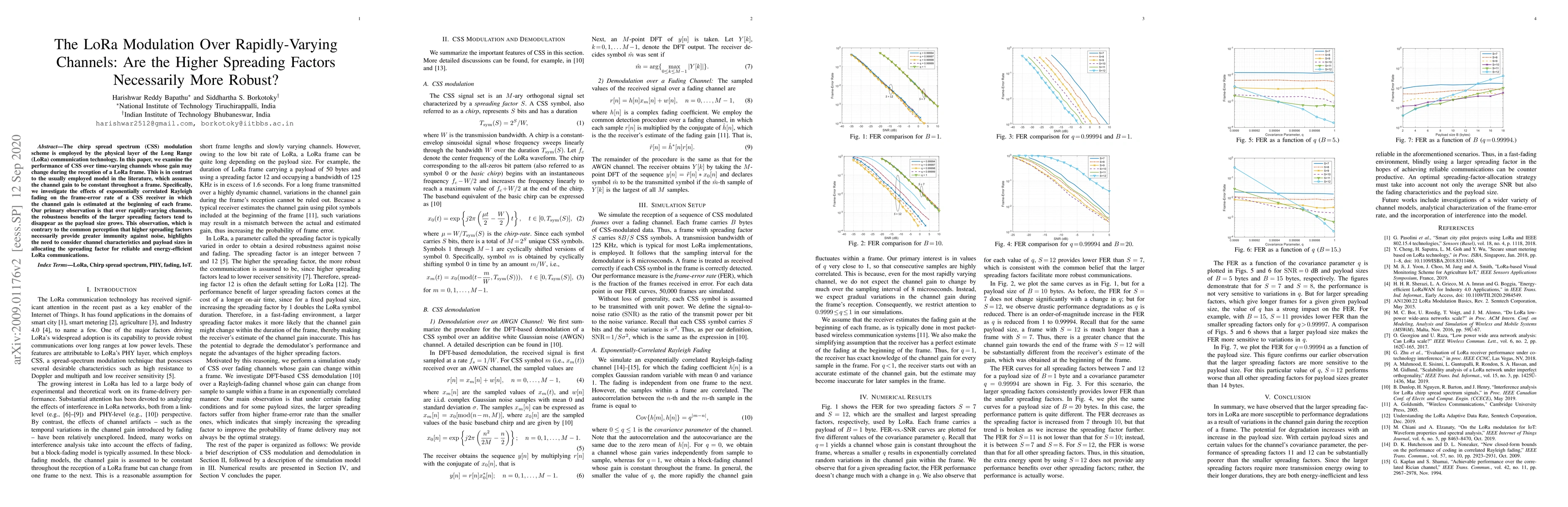 The chirp spread spectrum (CSS) modulation scheme is employed by the physical layer of the Long Range (LoRa) communication technology. In this paper, we examine the performance of CSS over time-varying channels whose gain may change during the reception of a LoRa frame. This is in contrast to the usually employed model in the literature, which assumes the channel gain to be constant throughout a frame. Specifically, we investigate the effects of exponentially correlated Rayleigh fading on the frame-error rate of a CSS receiver in which the channel gain is estimated at the beginning of each frame. Our primary observation is that over rapidly-varying channels, the robustness benefits of the larger spreading factors tend to disappear as the payload size grows. This observation, which is contrary to the common perception that higher spreading factors necessarily provide greater immunity against noise, highlights the need to consider channel characteristics and payload sizes in allocating the spreading factor for reliable and energy-efficient LoRa communications.