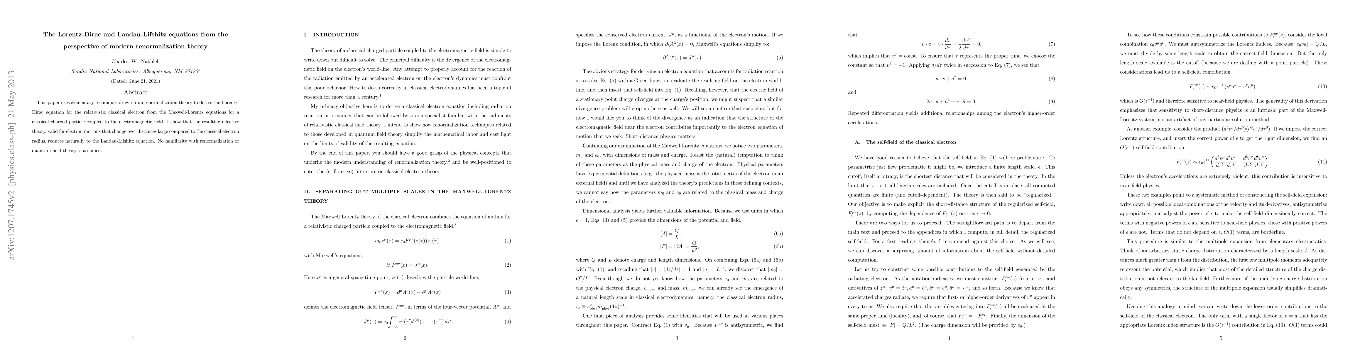 This paper uses elementary techniques drawn from renormalization theory to derive the Lorentz-Dirac equation for the relativistic classical electron from the Maxwell-Lorentz equations for a classical charged particle coupled to the electromagnetic field. I show that the resulting effective theory, valid for electron motions that change over distances large compared to the classical electron radius, reduces naturally to the Landau-Lifshitz equation. No familiarity with renormalization or quantum field theory is assumed.