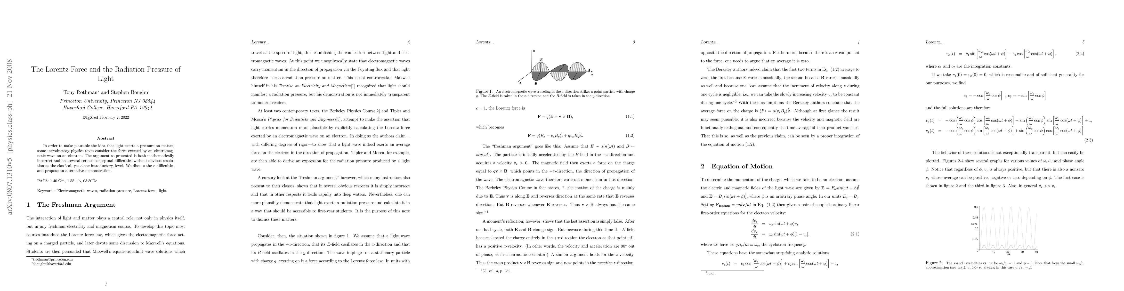 This paper critiques the common but flawed method used in introductory physics to explain light's pressure on matter via the Lorentz force on an electron, and proposes a more accurate alternative to resolve these issues.