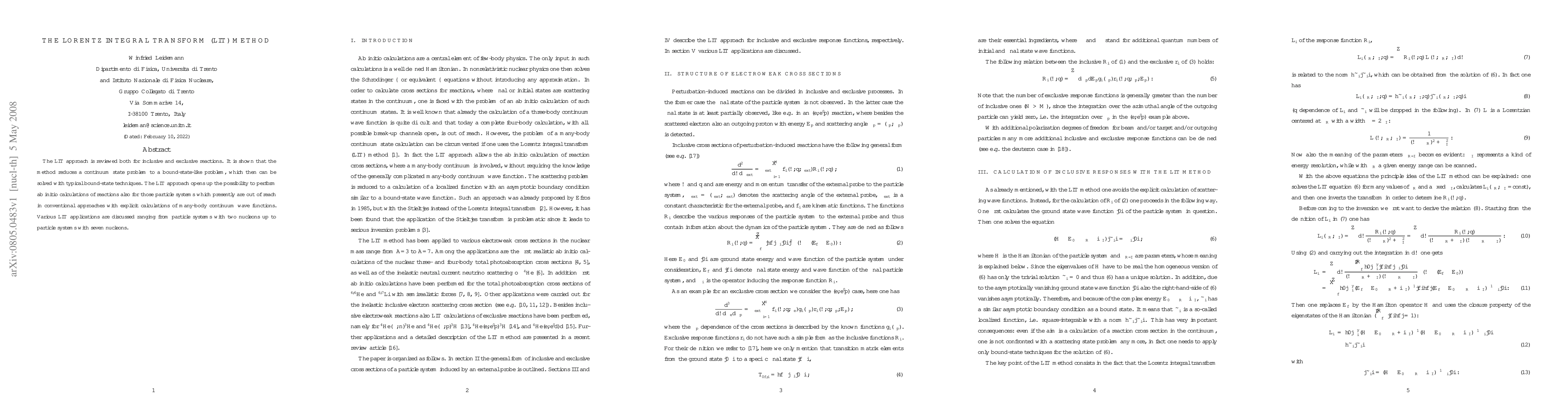 The Lorentz Integral Transform (LIT) method is reviewed for inclusive and exclusive reactions, transforming continuum state problems into bound-state-like ones for solvability. It enables ab initio calculations for complex particle systems, previously unattainable, with applications demonstrated from two to seven nucleons.