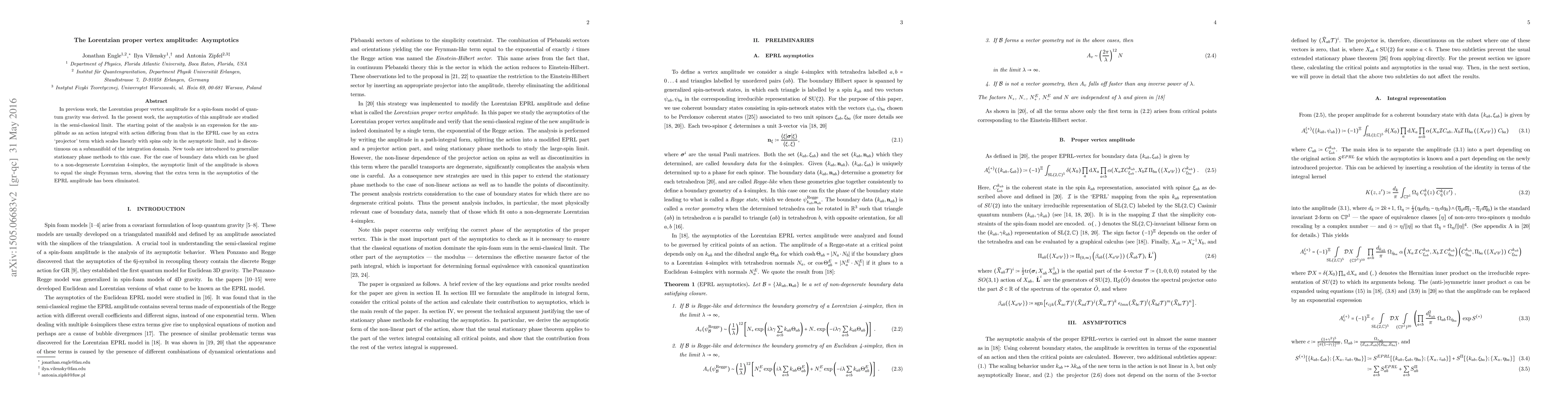 This paper studies the asymptotic behavior of the Lorentzian proper vertex amplitude in a spin-foam model of quantum gravity, introducing new tools to generalize stationary phase methods. The analysis reveals that the amplitude's asymptotic limit equals the single Feynman term, eliminating the extra term seen in the EPRL amplitude's asymptotics.
