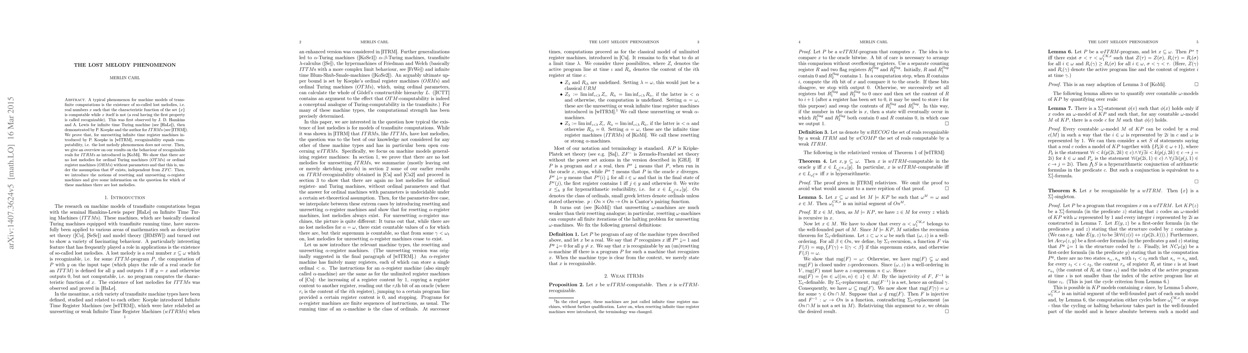 This paper investigates the "lost melody phenomenon" in machine models of transfinite computations, proving that unresetting infinite time register machines do not exhibit this phenomenon. It also explores the behavior of recognizable reals in infinite time register machines and discusses the existence of lost melodies in ordinal Turing and register machines under certain assumptions.