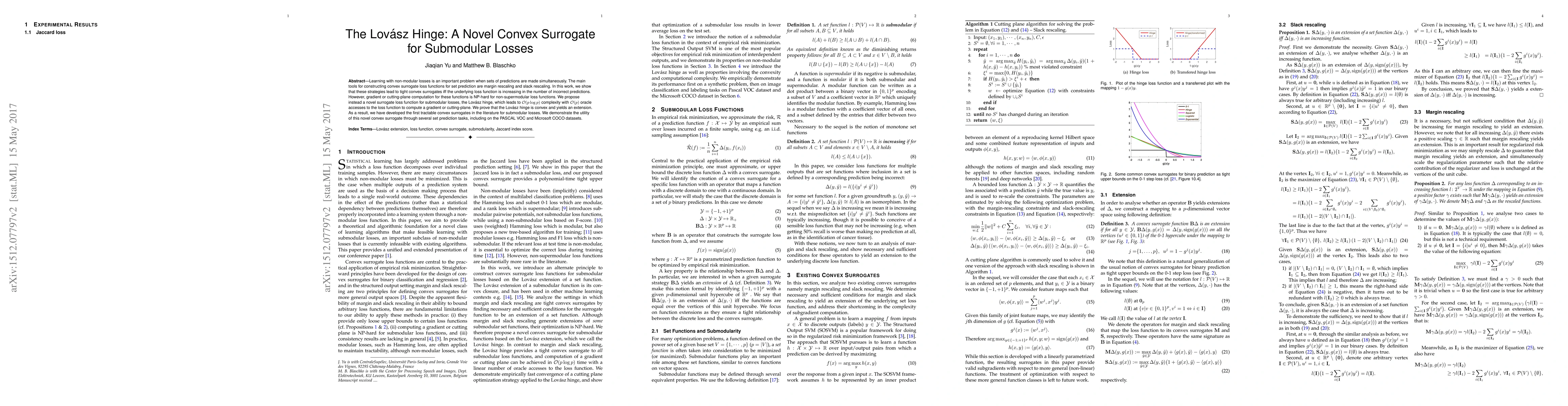 This paper introduces the Lov\'asz hinge, a novel convex surrogate for submodular losses, offering efficient computation for set prediction tasks. It demonstrates that the proposed method provides tractable convex surrogates for submodular losses, achieving O(p log p) complexity and outperforming existing methods on datasets like PASCAL VOC and Microsoft COCO.