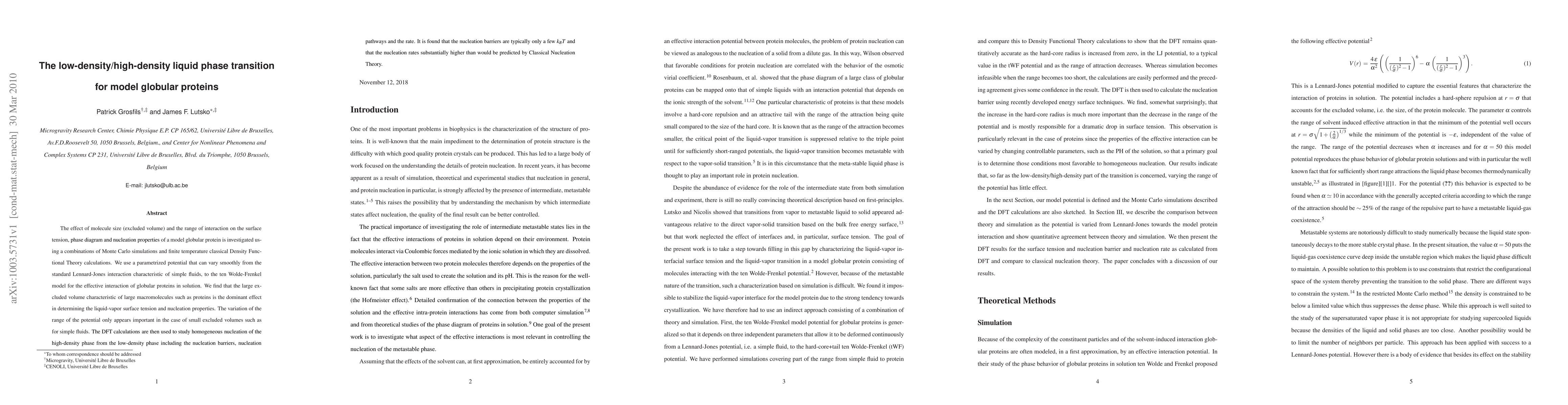 The effect of molecule size (excluded volume) and the range of interaction on the surface tension, phase diagram and nucleation properties of a model globular protein is investigated using a combinations of Monte Carlo simulations and finite temperature classical Density Functional Theory calculations. We use a parametrized potential that can vary smoothly from the standard Lennard-Jones interaction characteristic of simple fluids, to the ten Wolde-Frenkel model for the effective interaction of globular proteins in solution. We find that the large excluded volume characteristic of large macromolecules such as proteins is the dominant effect in determining the liquid-vapor surface tension and nucleation properties. The variation of the range of the potential only appears important in the case of small excluded volumes such as for simple fluids. The DFT calculations are then used to study homogeneous nucleation of the high-density phase from the low-density phase including the nucleation barriers, nucleation pathways and the rate. It is found that the nucleation barriers are typically only a few $k_{B}T$ and that the nucleation rates substantially higher than would be predicted by Classical Nucleation Theory.