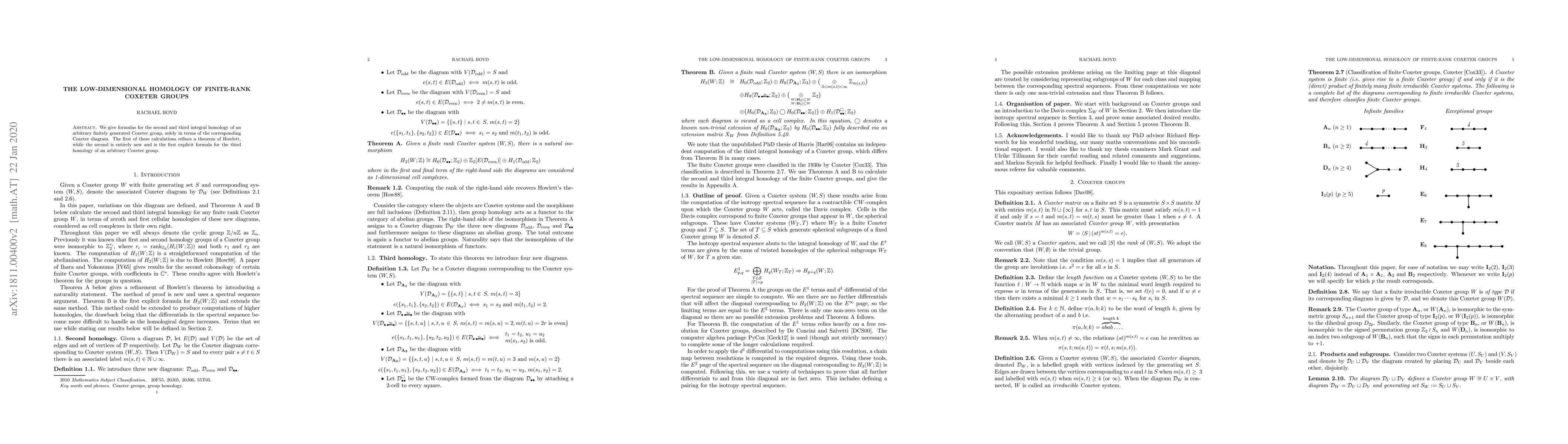 This paper presents formulas for the second and third integral homology of any finitely generated Coxeter group, derived exclusively from the Coxeter diagram. The second homology refines Howlett's theorem, and the third homology provides the first explicit formula for it.