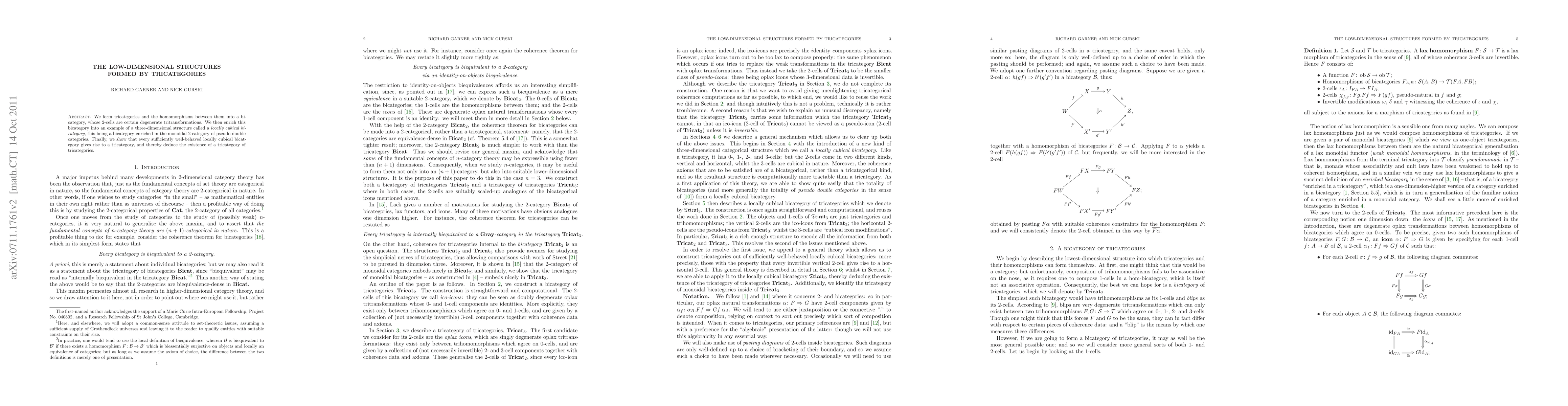 We form tricategories and the homomorphisms between them into a bicategory, whose 2-cells are certain degenerate tritransformations. We then enrich this bicategory into an example of a three-dimensional structure called a locally cubical bicategory, this being a bicategory enriched in the monoidal 2-category of pseudo double categories. Finally, we show that every sufficiently well-behaved locally cubical bicategory gives rise to a tricategory, and thereby deduce the existence of a tricategory of tricategories.