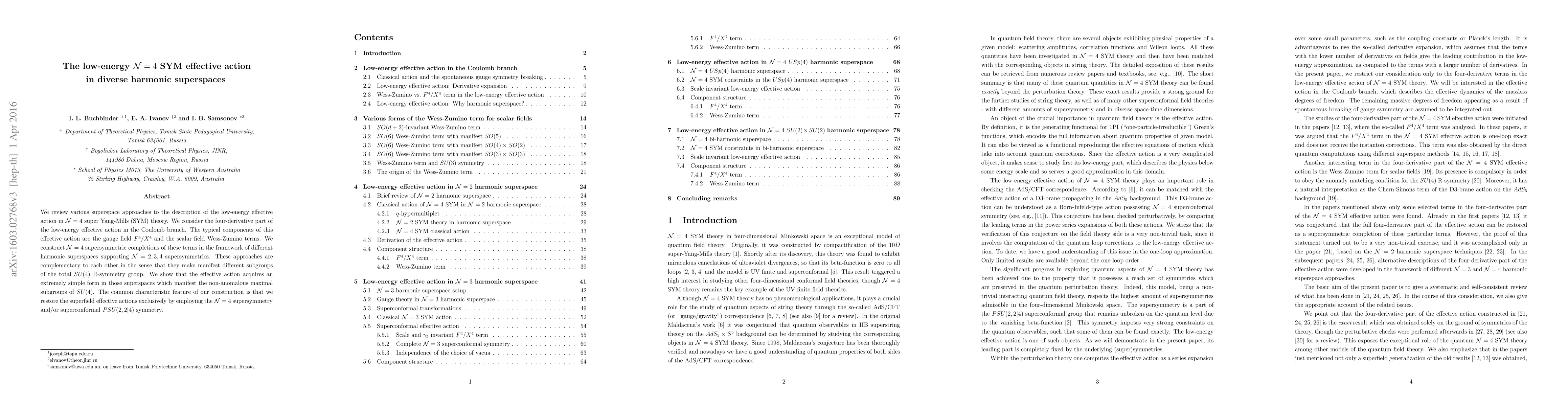 This paper reviews various superspace methods for describing the low-energy effective action in N=4 super Yang-Mills theory, focusing on the four-derivative part in the Coulomb branch. It constructs N=4 supersymmetric terms in diverse harmonic superspaces, highlighting their simplicity in superspaces that manifest maximal subgroups of the SU(4) R-symmetry group.