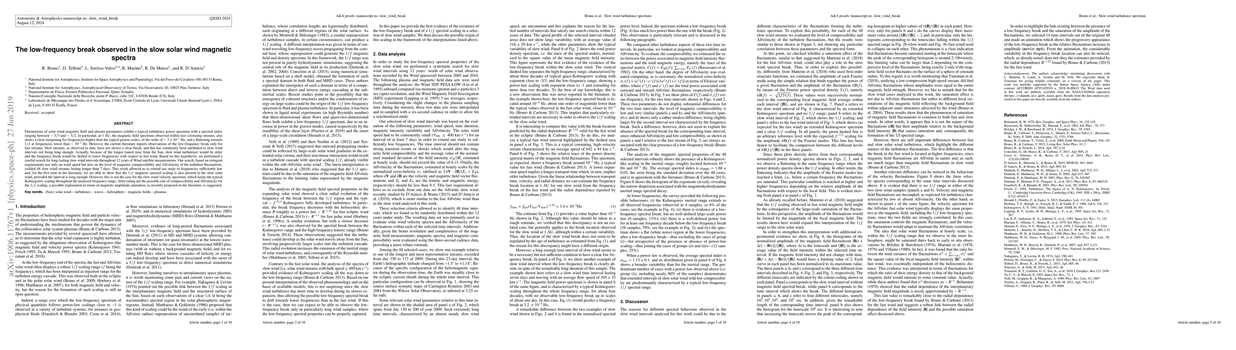 This paper investigates the magnetic spectral characteristics of the slow solar wind, revealing that a low-frequency break and $1/f$ scaling, previously observed only in fast streams, also exists in long-lasting slow wind intervals. The study suggests magnetic amplitude saturation as a potential explanation for the observed spectral behavior.