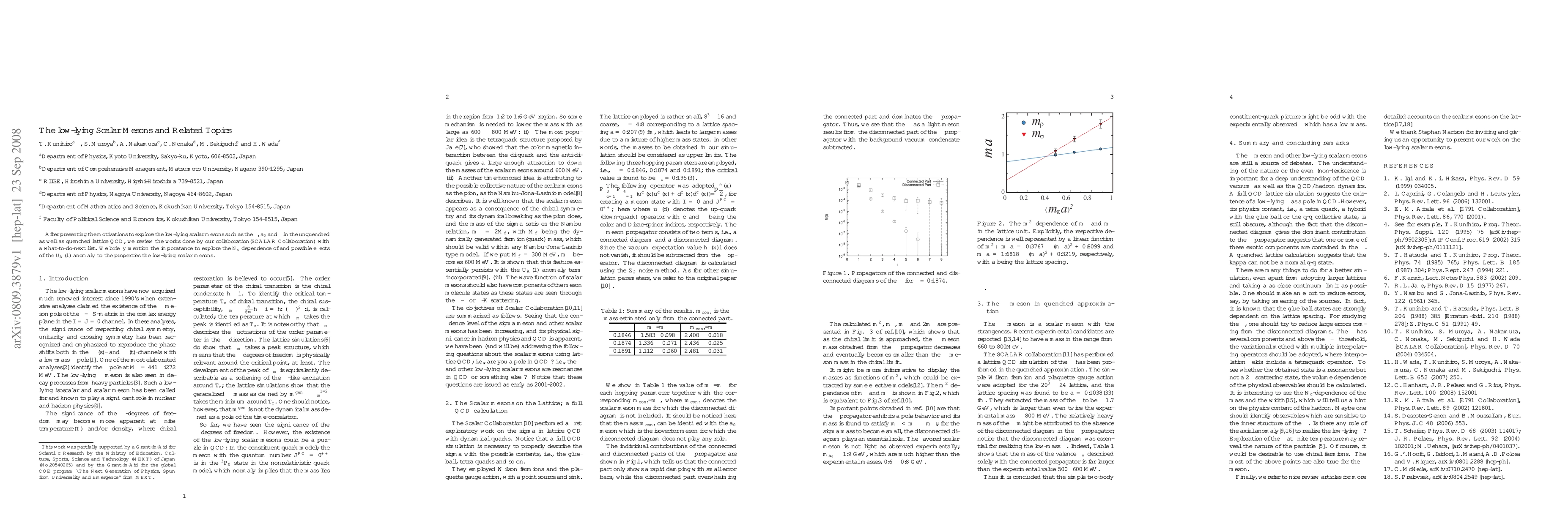 Summary: This paper reviews the exploration of low-lying scalar mesons like $\sigma$, $a_0$, and $\kappa$ using lattice QCD, highlighting the work of the SCALAR Collaboration and suggesting future directions, including the study of $N_c$ dependence and $U_A(1)$ anomaly effects.
