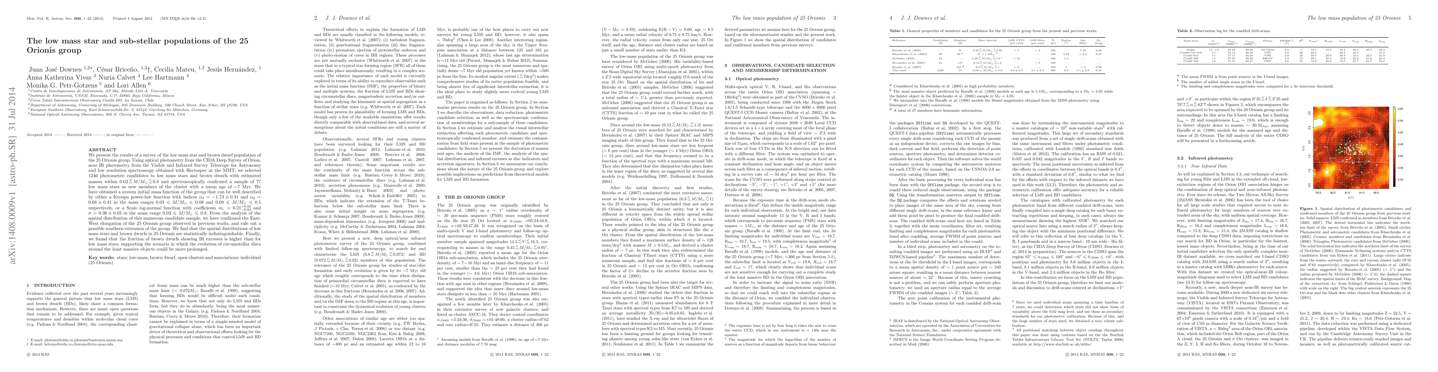 The study presents a survey of the 25 Orionis group, identifying 77 new low-mass stars and brown dwarfs with a mean age of ~7 Myr. The initial mass function resembles either a Kroupa or Scalo function. The research confirms the group's East-West elongation and rules out a southern extension. It also finds that brown dwarfs show IR excesses more frequently than low-mass stars, suggesting longer-lasting circumstellar disc evolution around the least massive objects.